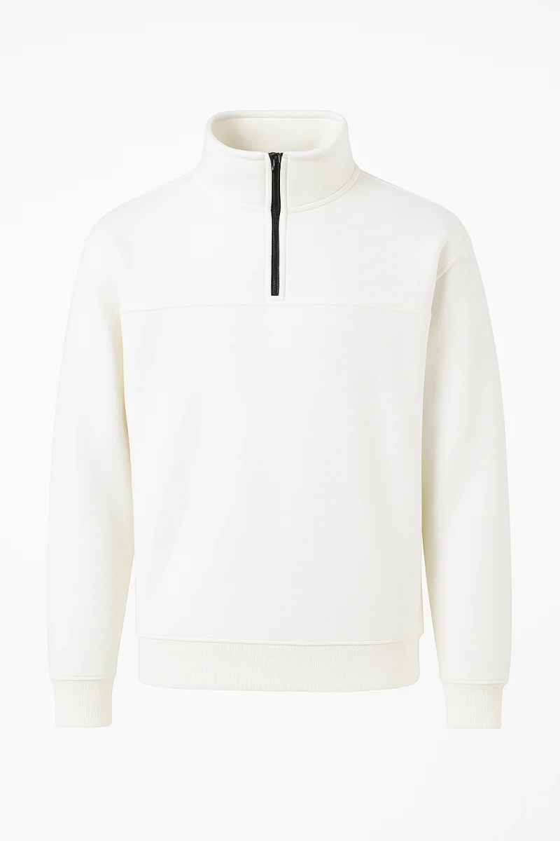 Arka Yarım Fermuarlı Oversize Yakalı Basic SweatShirt - Beyaz