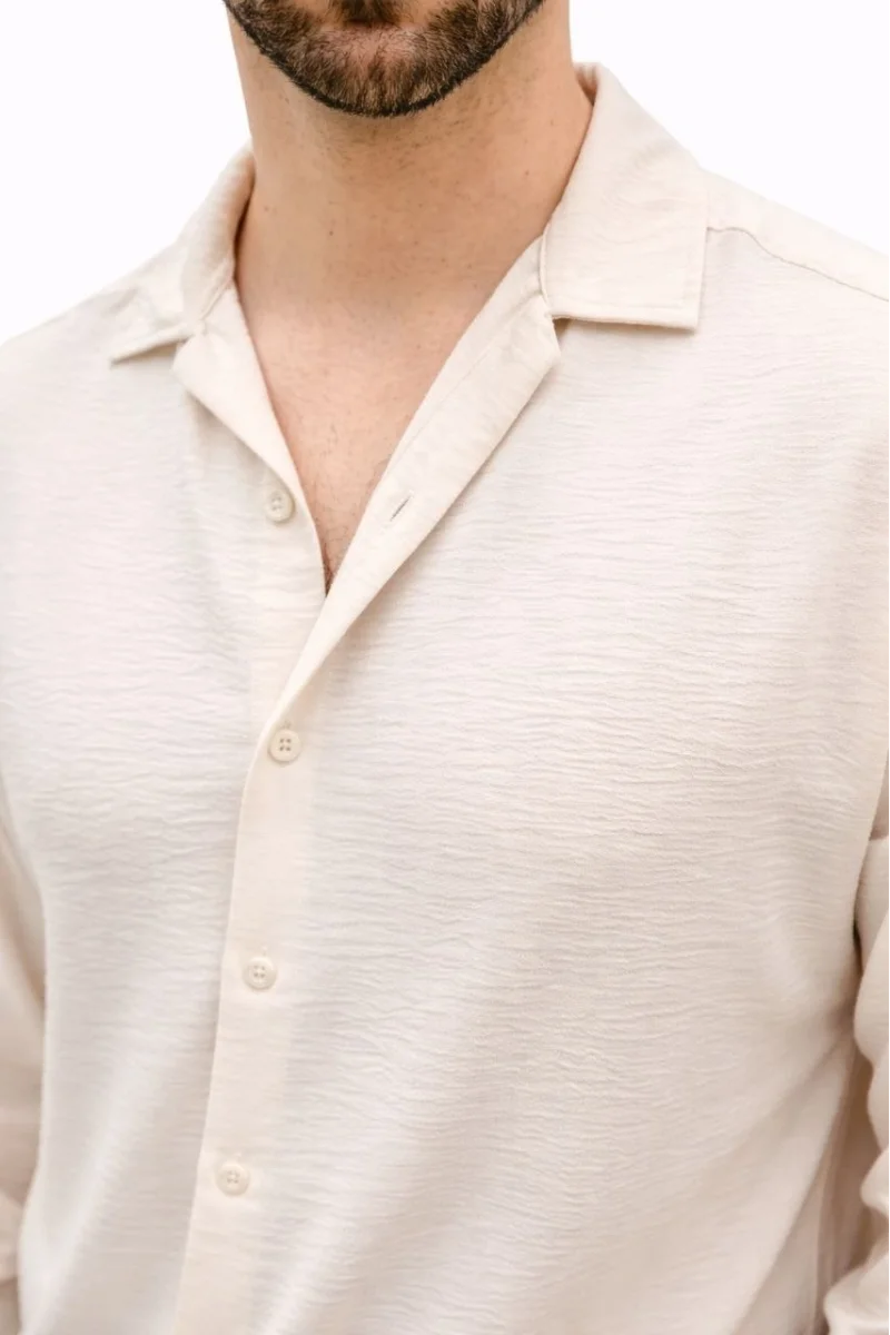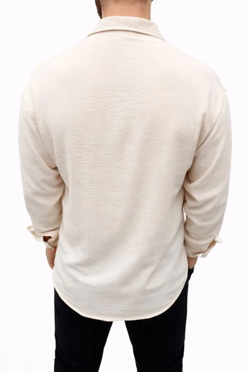 Erkek Aerobin Kumaş Oversize 4 Mevsim Uzun Kollu Rahat Kalıp Gömlek - Bej