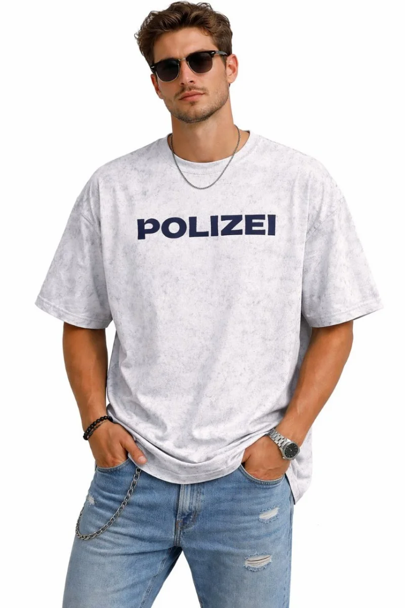 Erkek Asit Yıkamalı Oversize Tişört ön ve Arkası Baskılı %100 Pamuk Street Style - Beyaz