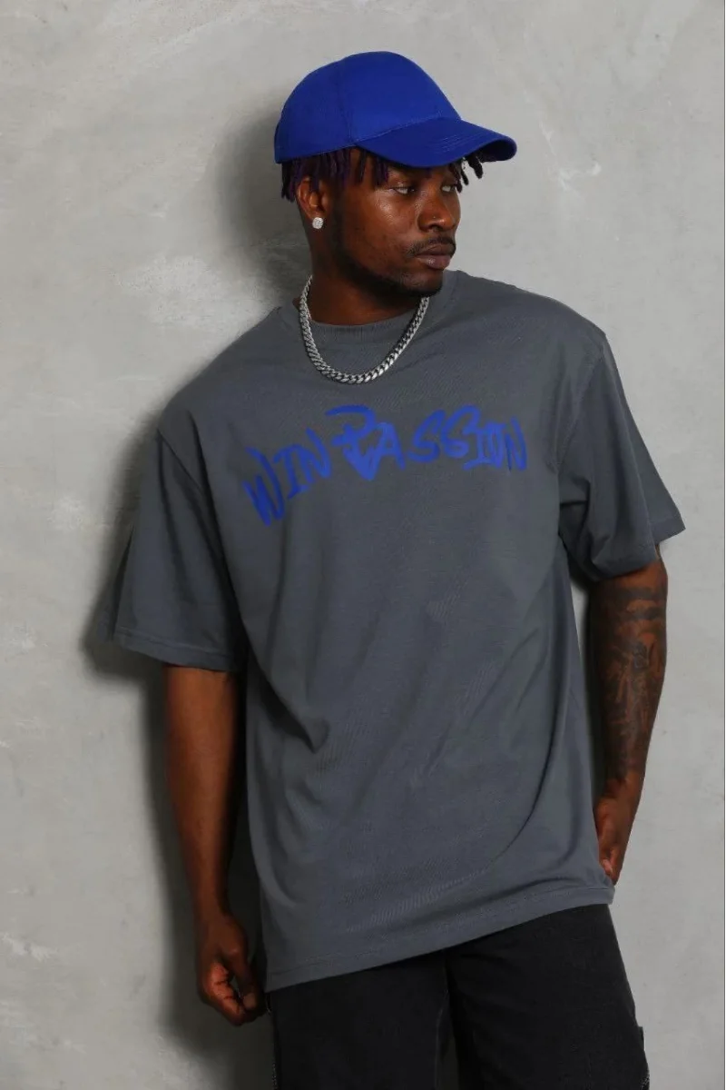 Erkek Baskılı T-Shirt Kısa Kol Bisiklet Yaka Regular Fit Rahat Kalıp Günlük Tişört - Füme