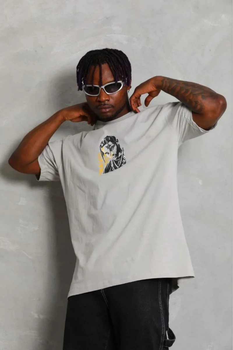 Erkek Baskılı T-Shirt Kısa Kol Bisiklet Yaka Regular Fit Rahat Kalıp Günlük Tişört - Gri