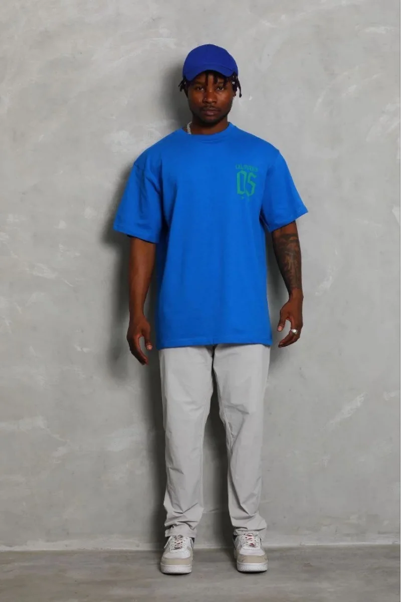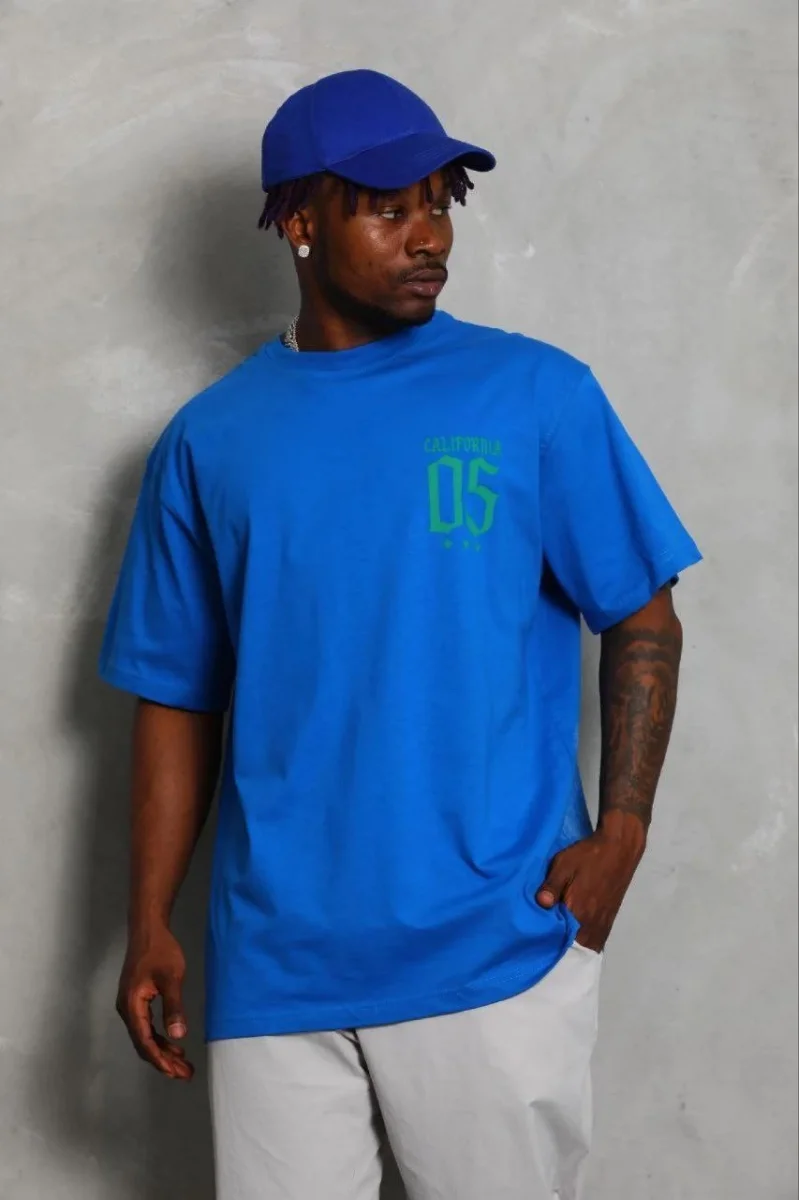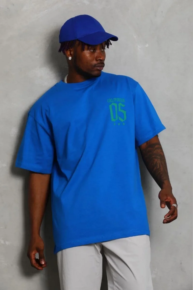 Erkek Baskılı T-Shirt Kısa Kol Bisiklet Yaka Regular Fit Rahat Kalıp Günlük Tişört - Saks Mavisi