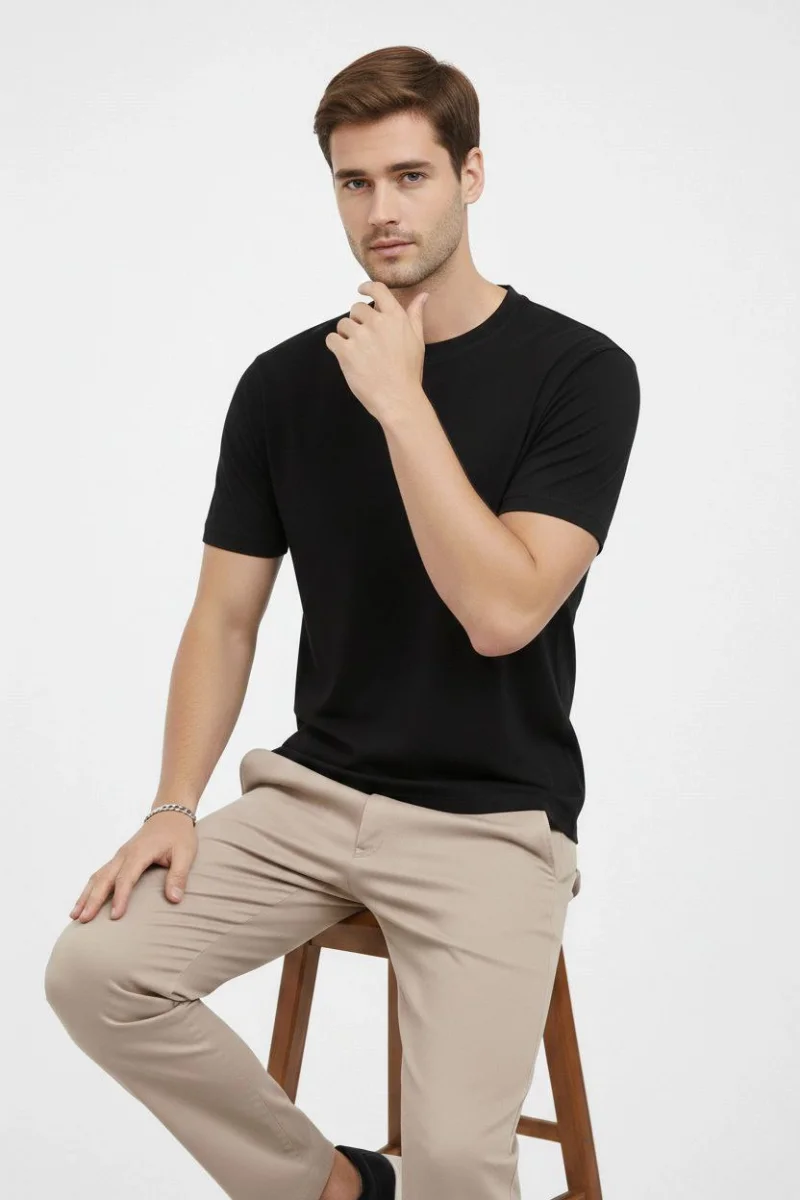 Erkek Bisiklet Yaka Tişört Regular Kalıp Basic Pamuklu Günlük Kullanım T-shirt - Siyah
