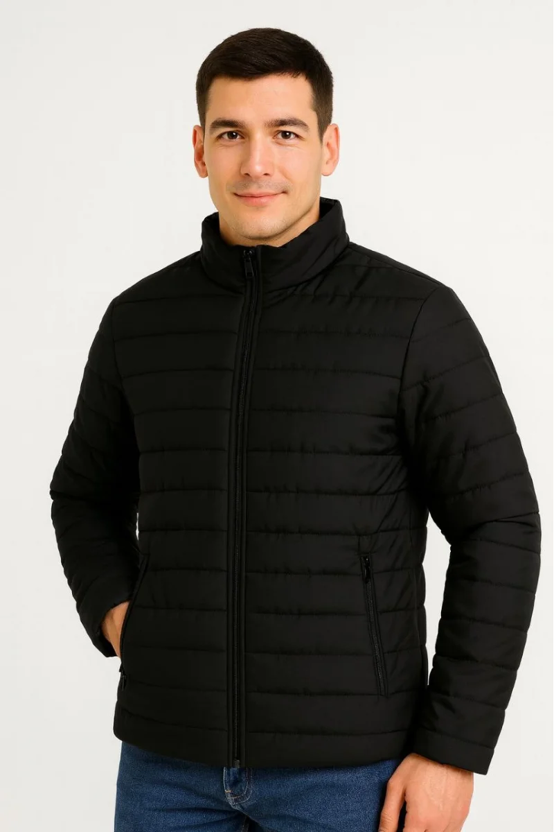 Erkek Bomber Mont Ceket – Su İtici Kumaş, Kapitone Astarlı, Fermuarlı, Kışlık - Siyah