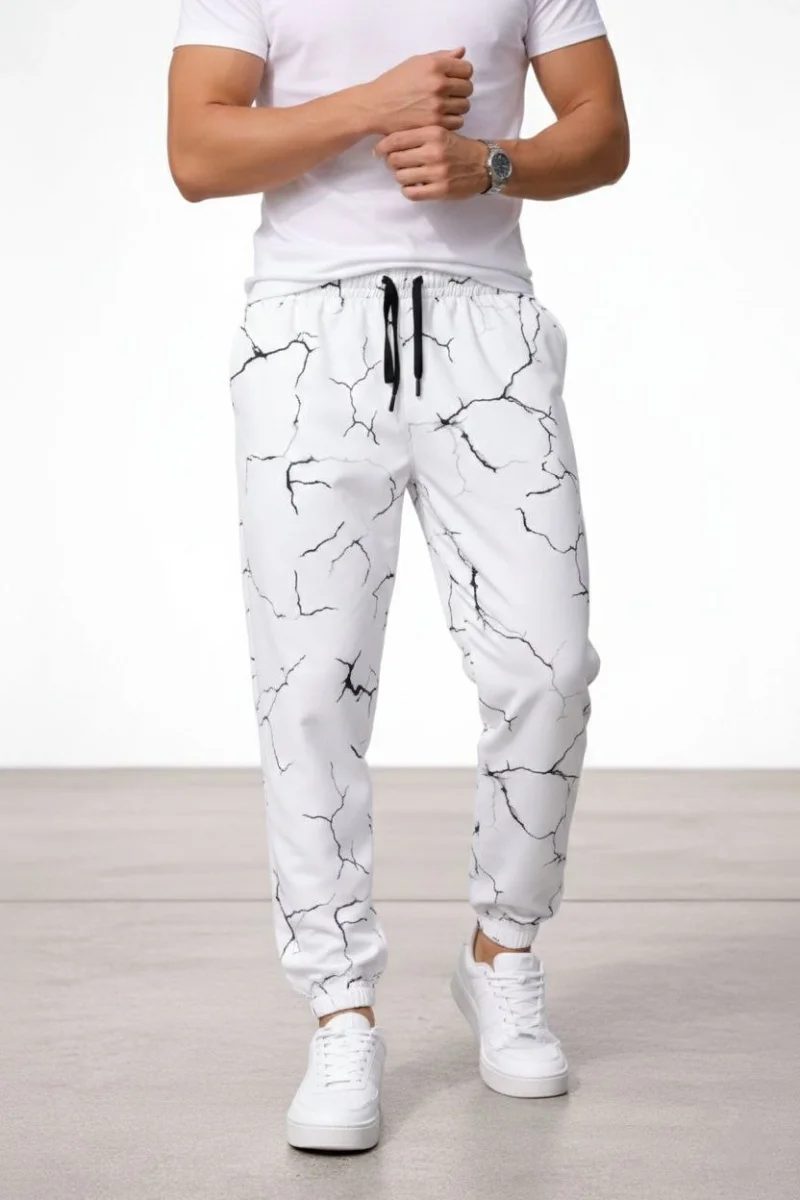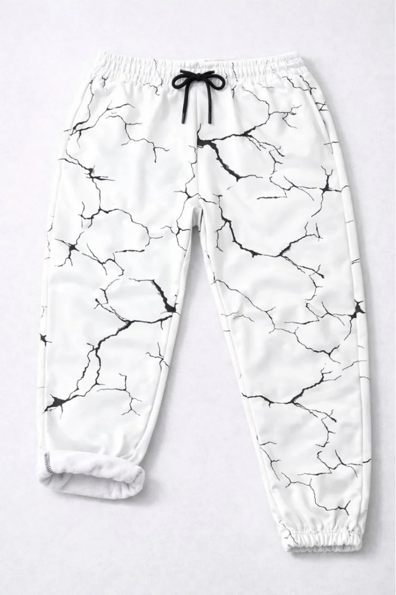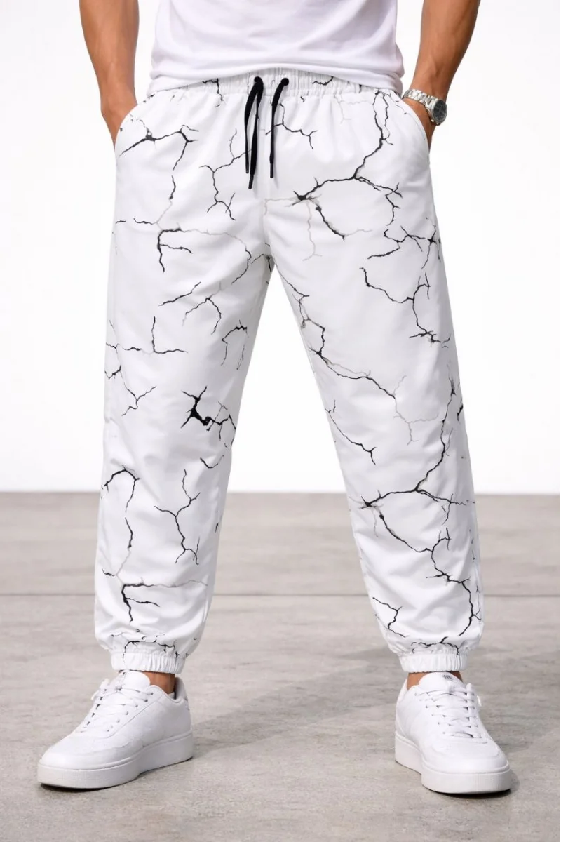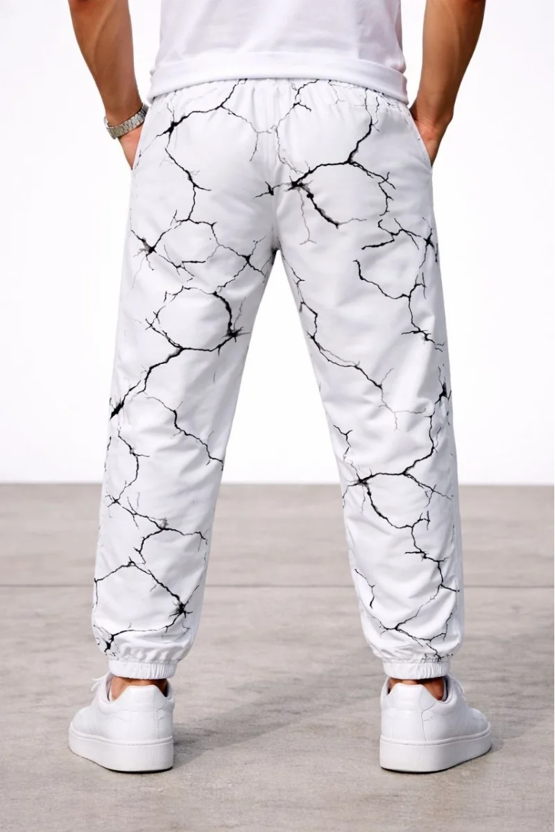Erkek Dijital Baskılı Eşofman Altı Üç İplik Şardonlu Lastikli Paça Cepli Kalıp - Beyaz