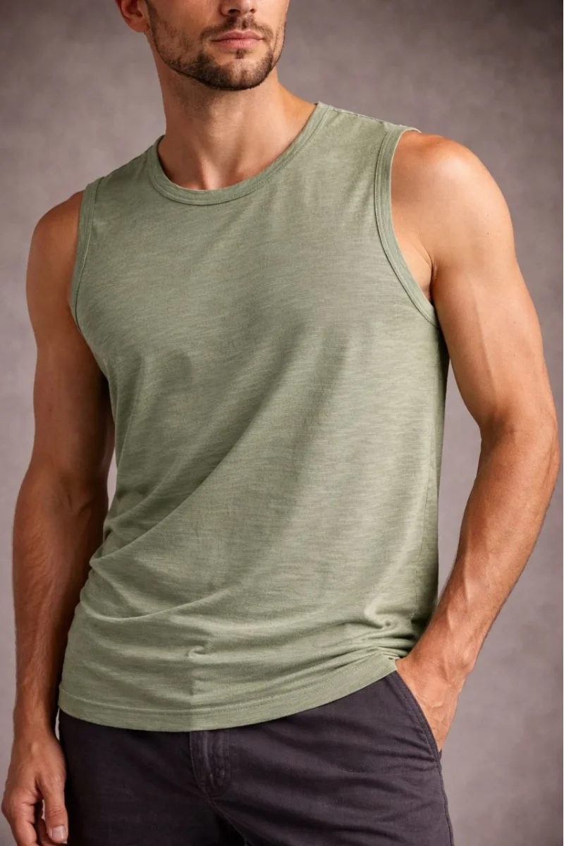 Erkek Flamlı Sıfır Kolsuz Atlet ve Fitness - Mint Yeşili
