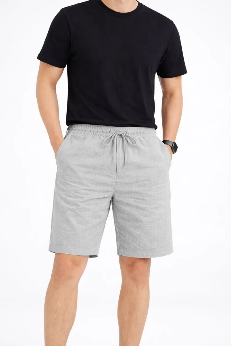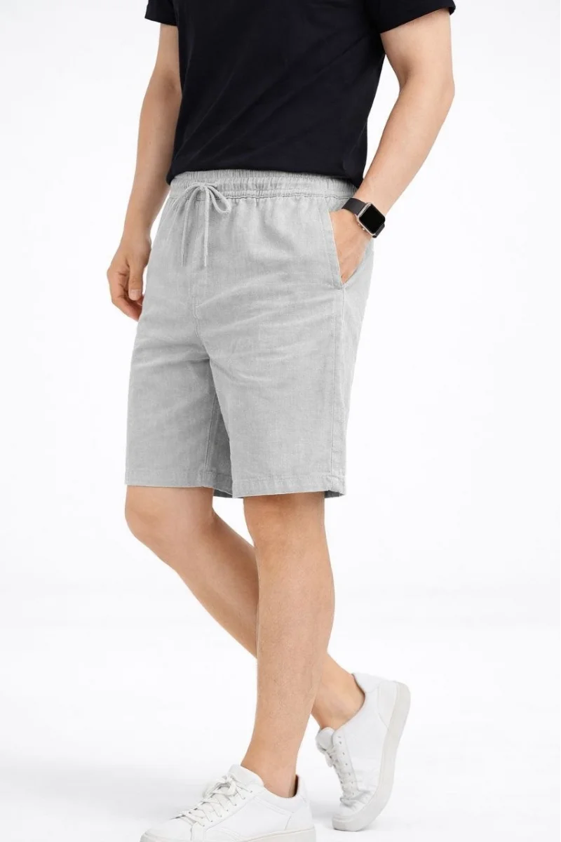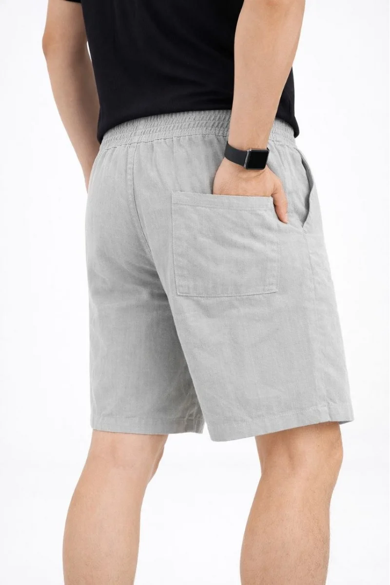 Erkek Keten Kumaş Cepli Rahat Kesim Bel Lastikli Şort - Gri