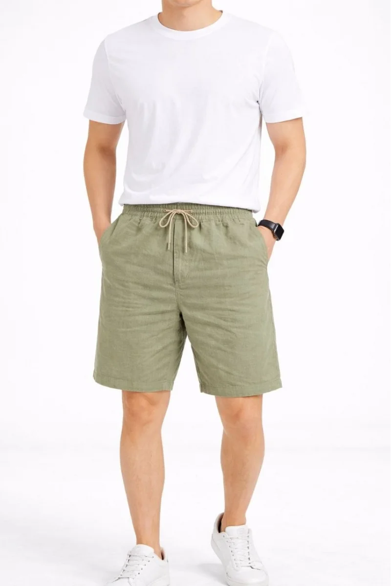Erkek Keten Kumaş Cepli Rahat Kesim Bel Lastikli Şort - Mint Yeşili
