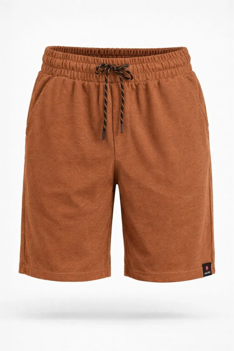 Erkek otoban Dokuma Şort Beli Lastikli Bağcıklı, Cepli, Rahat Kesim Günlük Yazlık Şort - Kahverengi