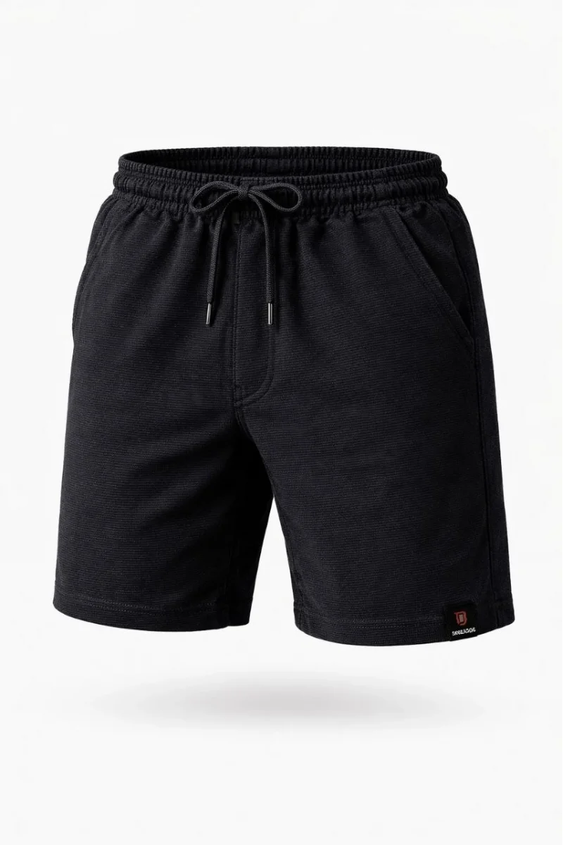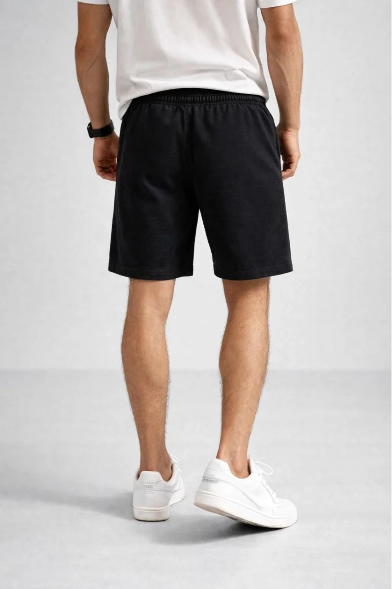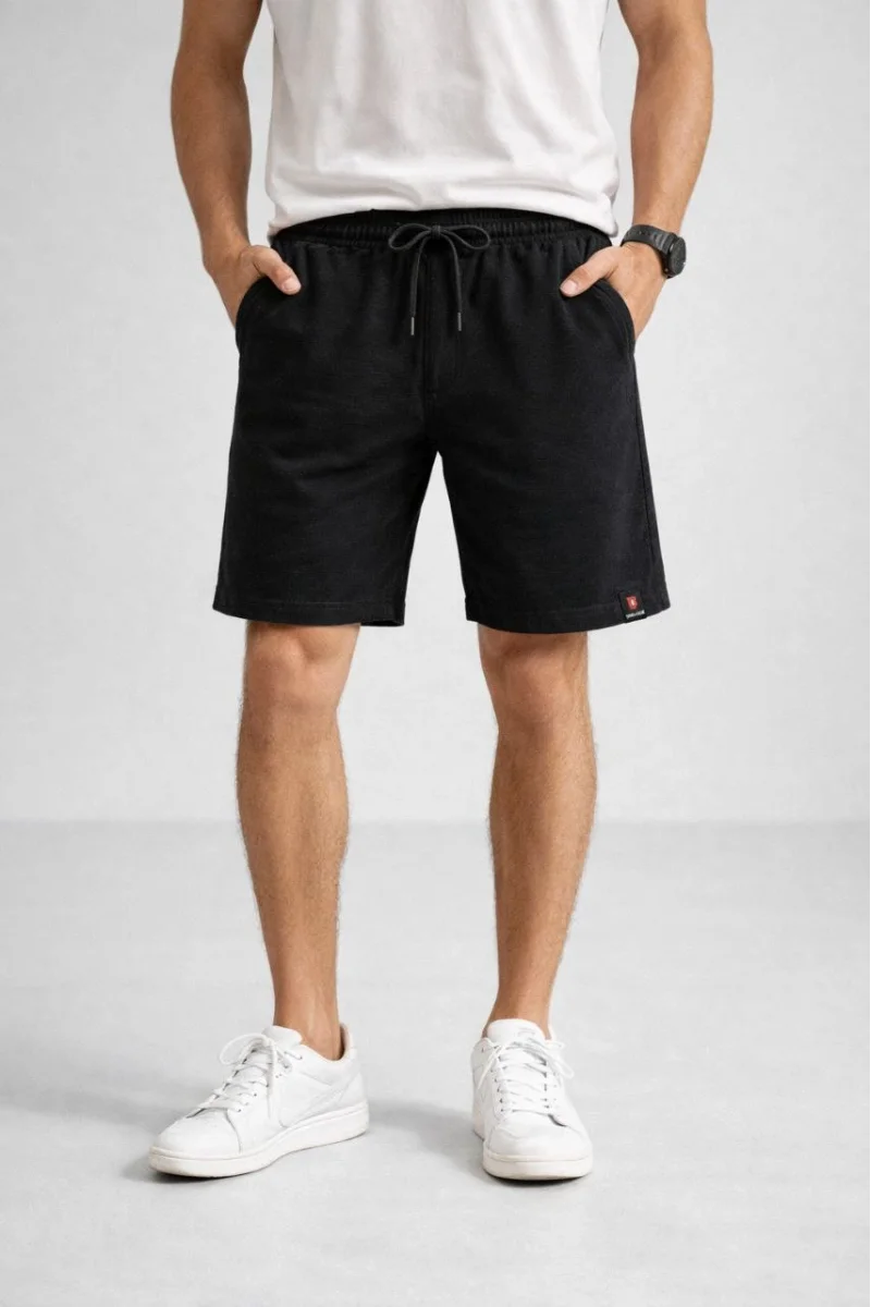 Erkek otoban Dokuma Şort Beli Lastikli Bağcıklı, Cepli, Rahat Kesim Günlük Yazlık Şort - Siyah