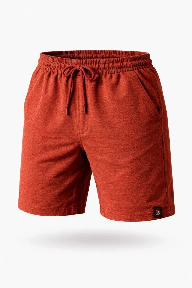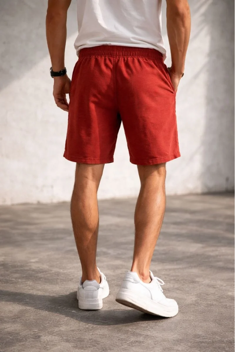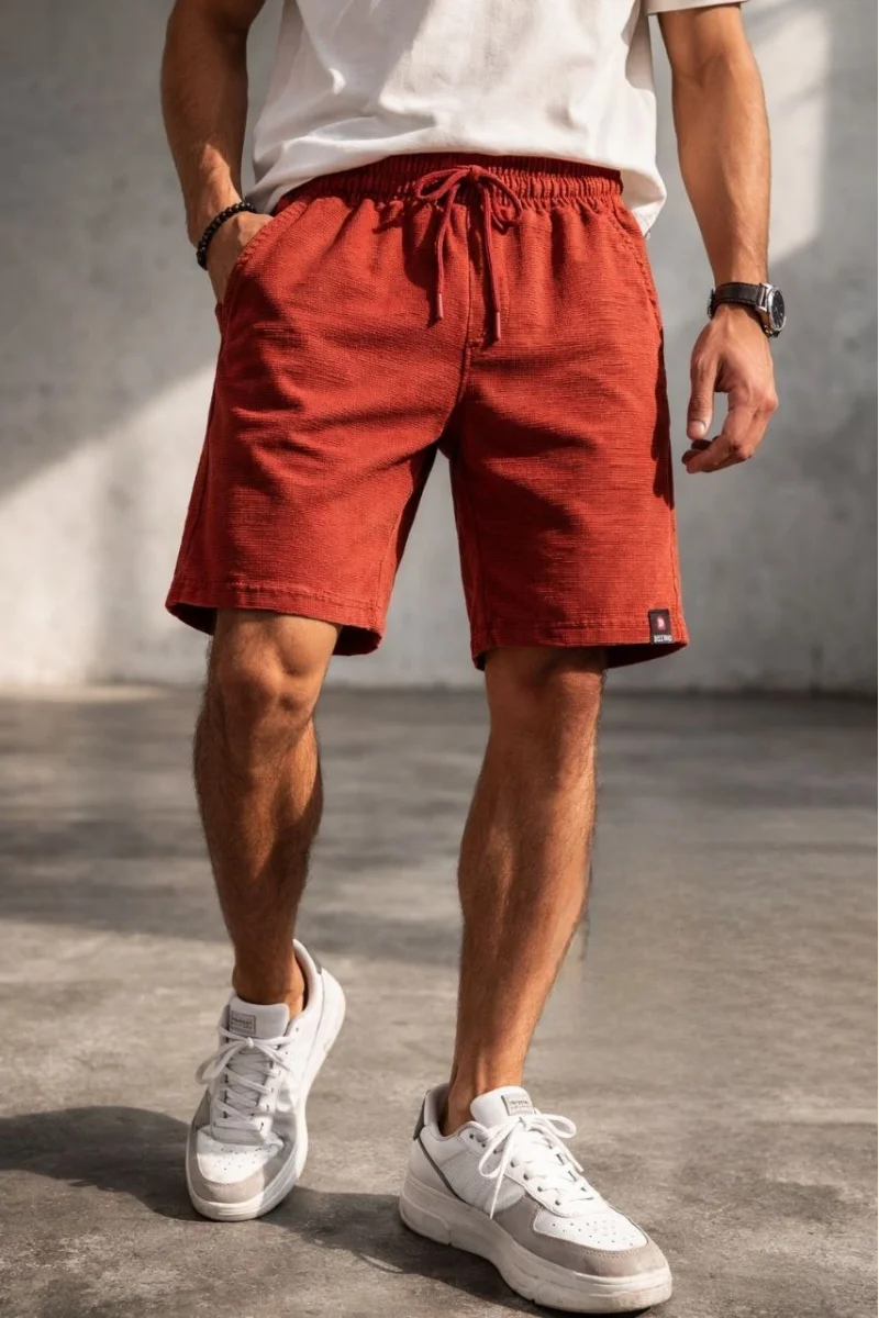 Erkek otoban Dokuma Şort Beli Lastikli Bağcıklı, Cepli, Rahat Kesim Günlük Yazlık Şort - Turuncu