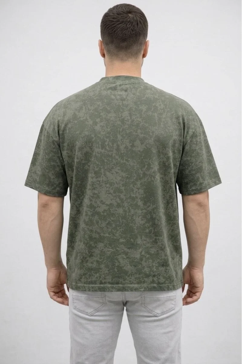 Erkek Premium Tişört OSY Yumuşak Dokulu Yıkamalı Oversize T-Shirt - Haki