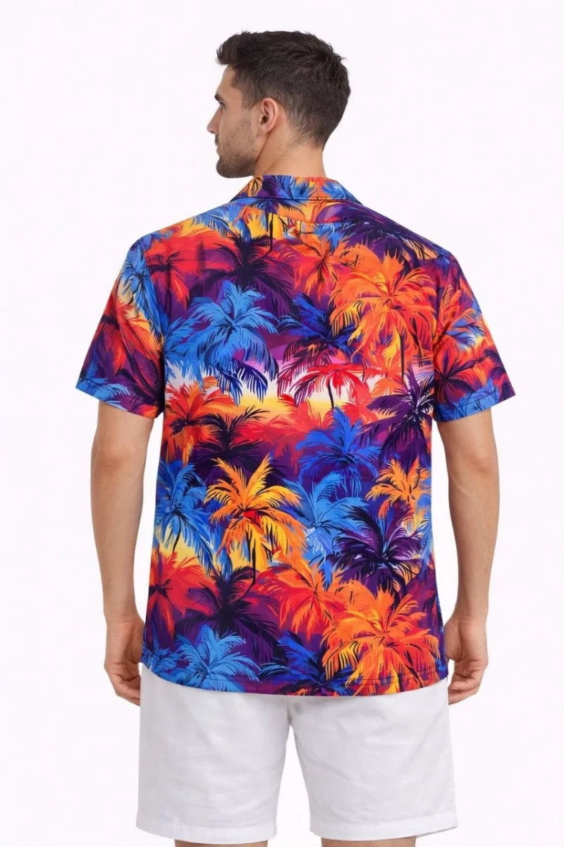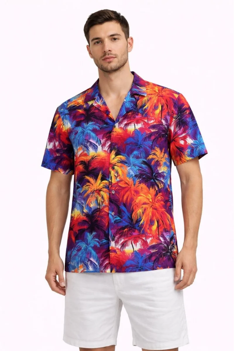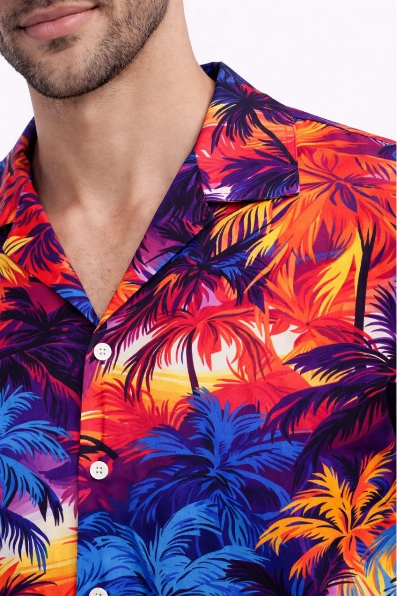 Erkek Tropikal Desenli Kısa Kol Gömlek Rahat Kalıp Yazlık Hawaii Tarz - Desenli