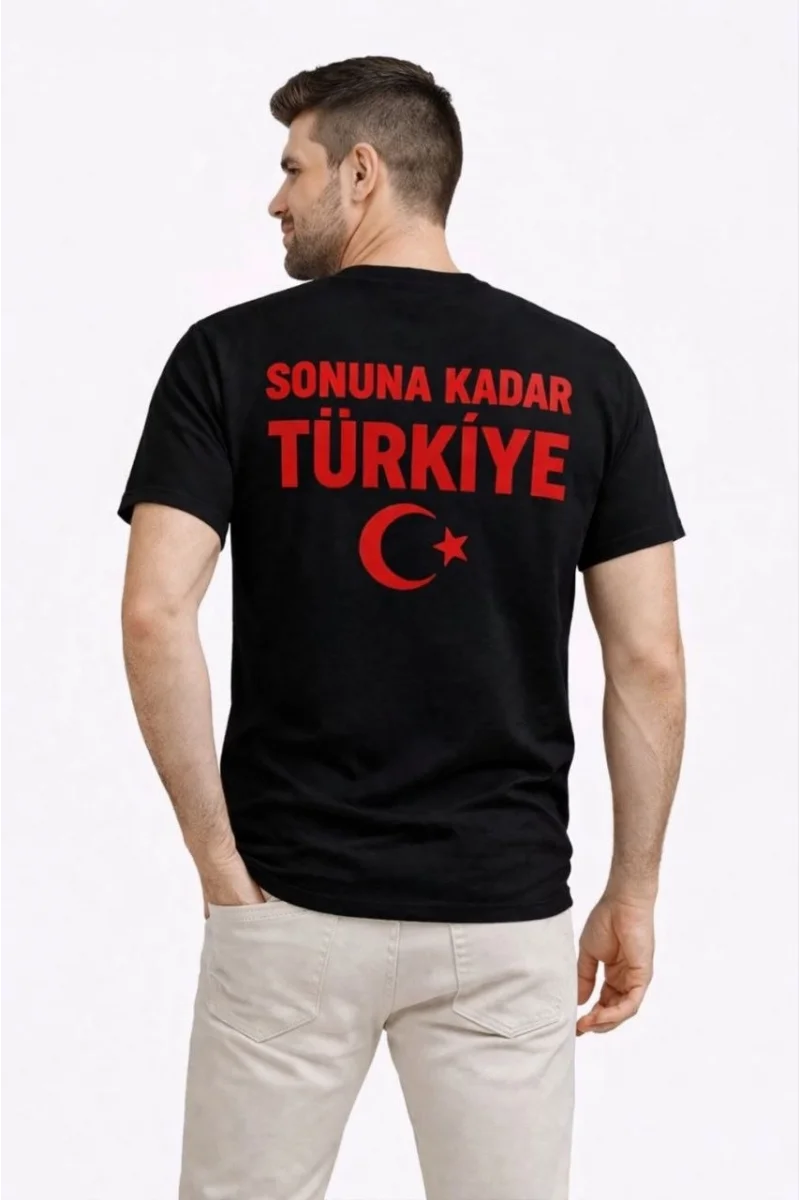 Erkek TÜRKİYE Ay Yıldız Baskılı Taraftar Forma T-Shirt - Siyah