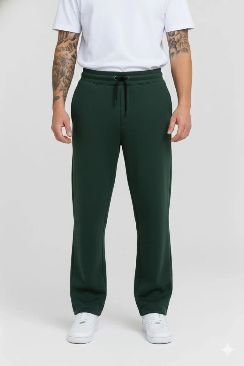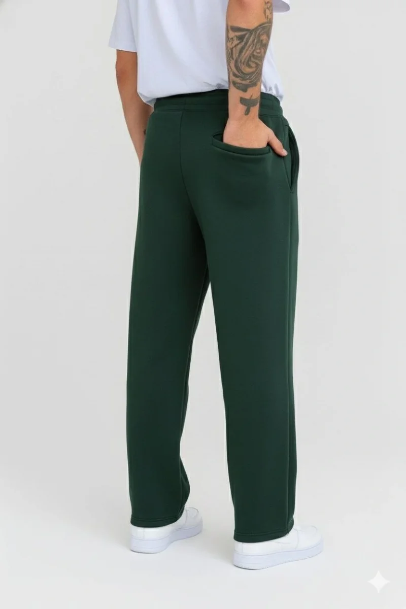 Erkek Üç iplik Kışlık Pamuklu Ovarsize Bağcıklı Düz Paça Cepli Eşofman Altı Spor Rahat Model - Haki