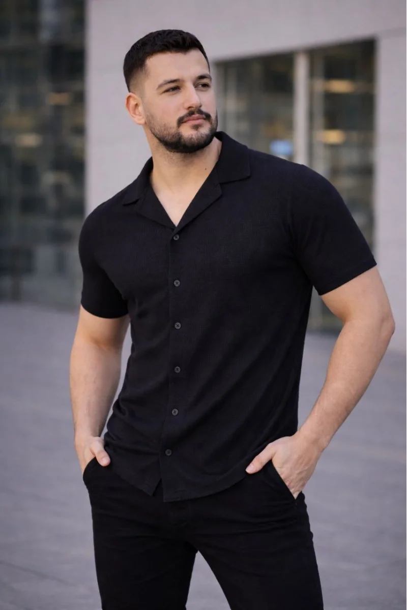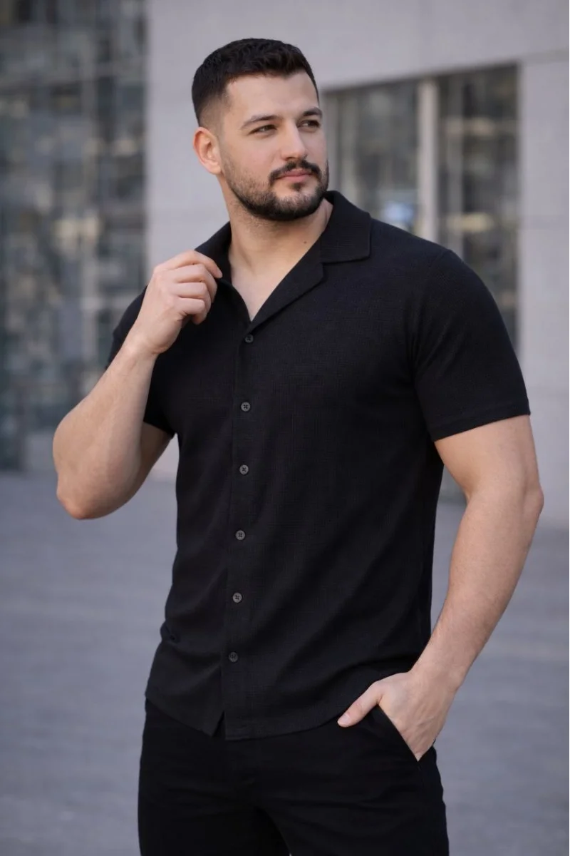 Erkek Waffle Dokuma Açık Yakalı Düğmeli Regular Kalıp 3’lü Gömlek Seti - Siyah, Beyaz, Gri