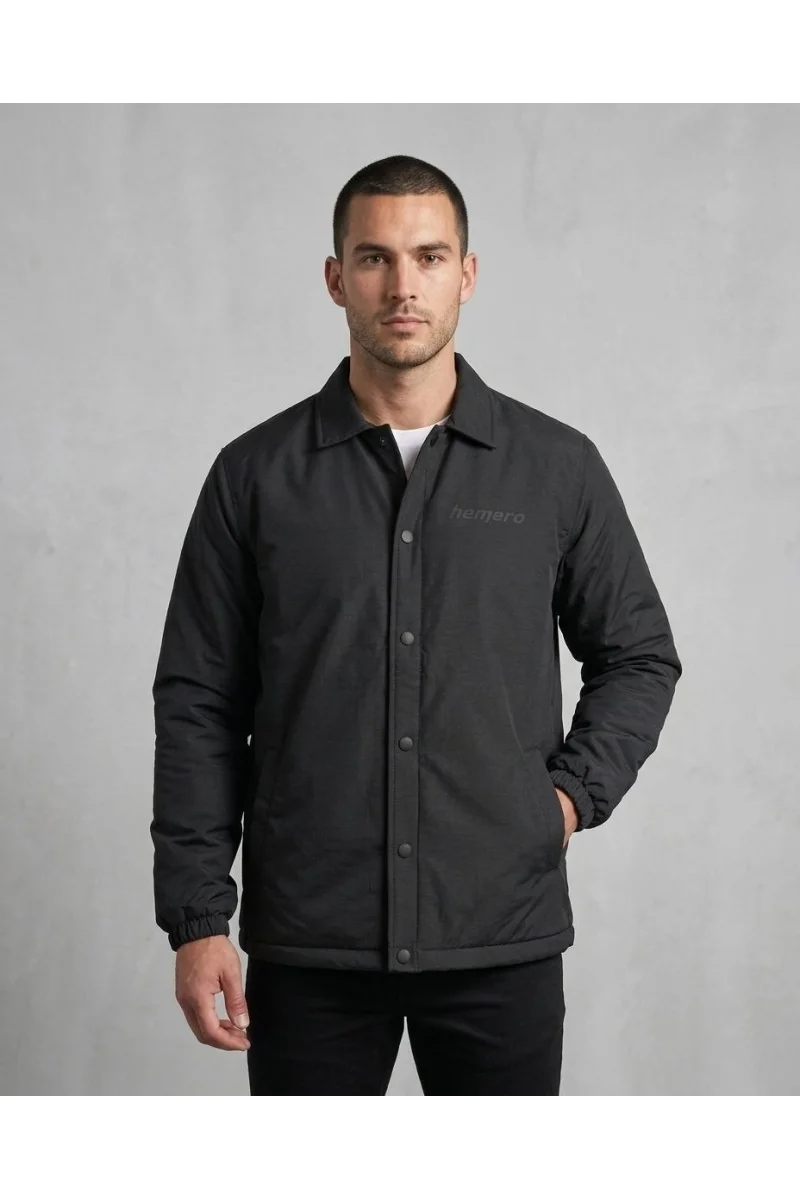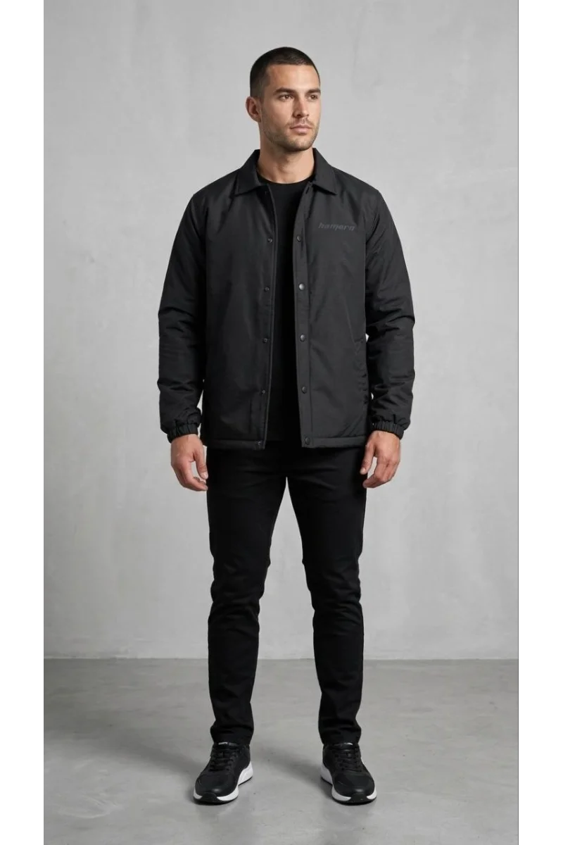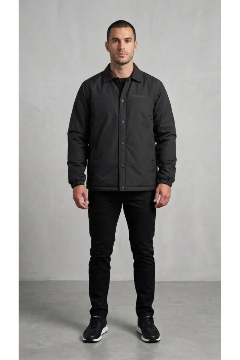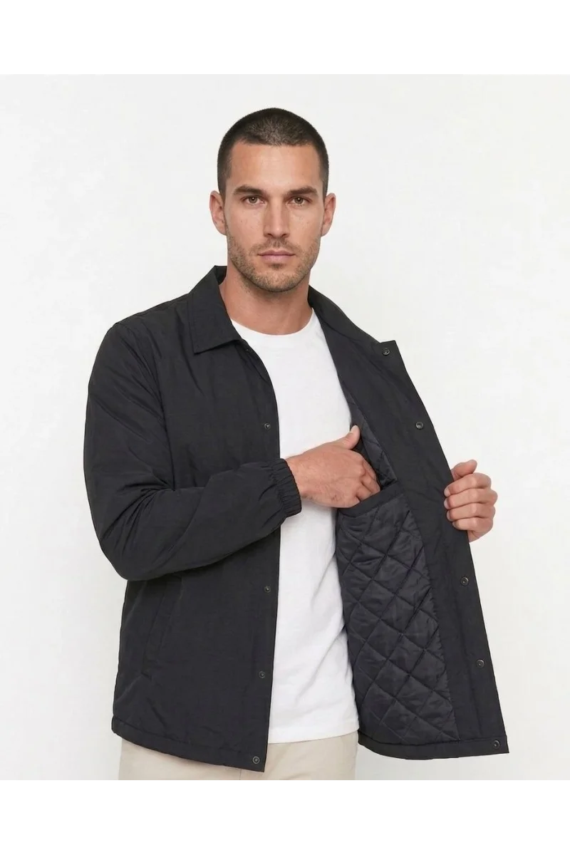 Erkek Yağmur İtici İç Astarlı Çıtçıtlı İç Cepli Dış Cepli Mevsimlik Mont - Siyah