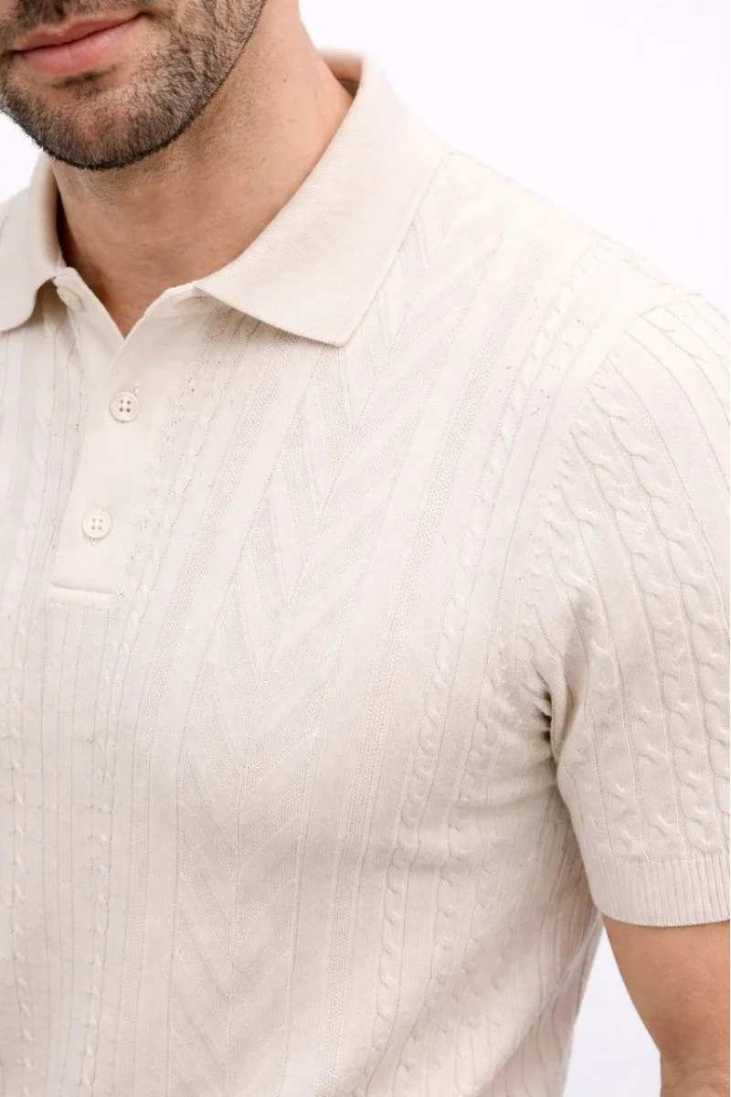 Erkek Yazlık Triko Tişört Kısa Kol Polo Yaka Düğmeli T-Shirt - Krem