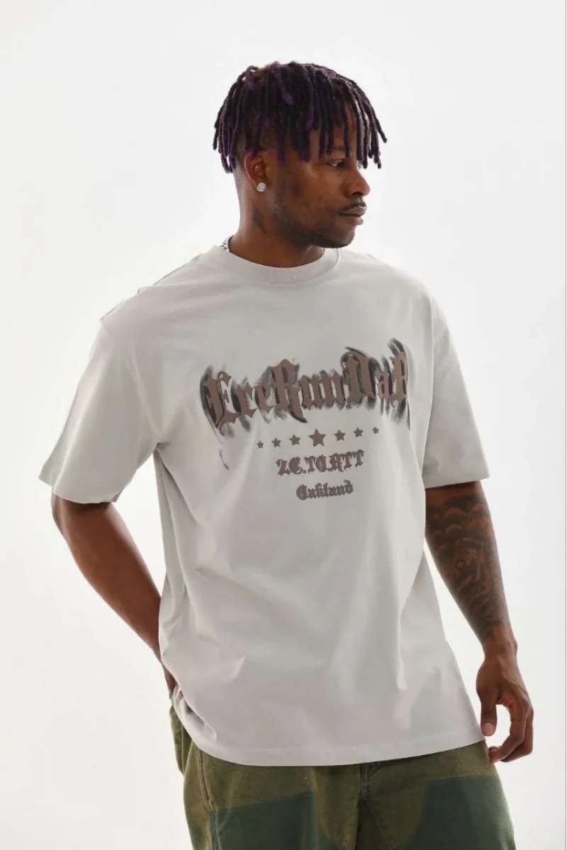 Erkek Baskılı T-Shirt Kısa Kol Bisiklet Yaka Regular Fit Rahat Kalıp Günlük Tişört - Gri