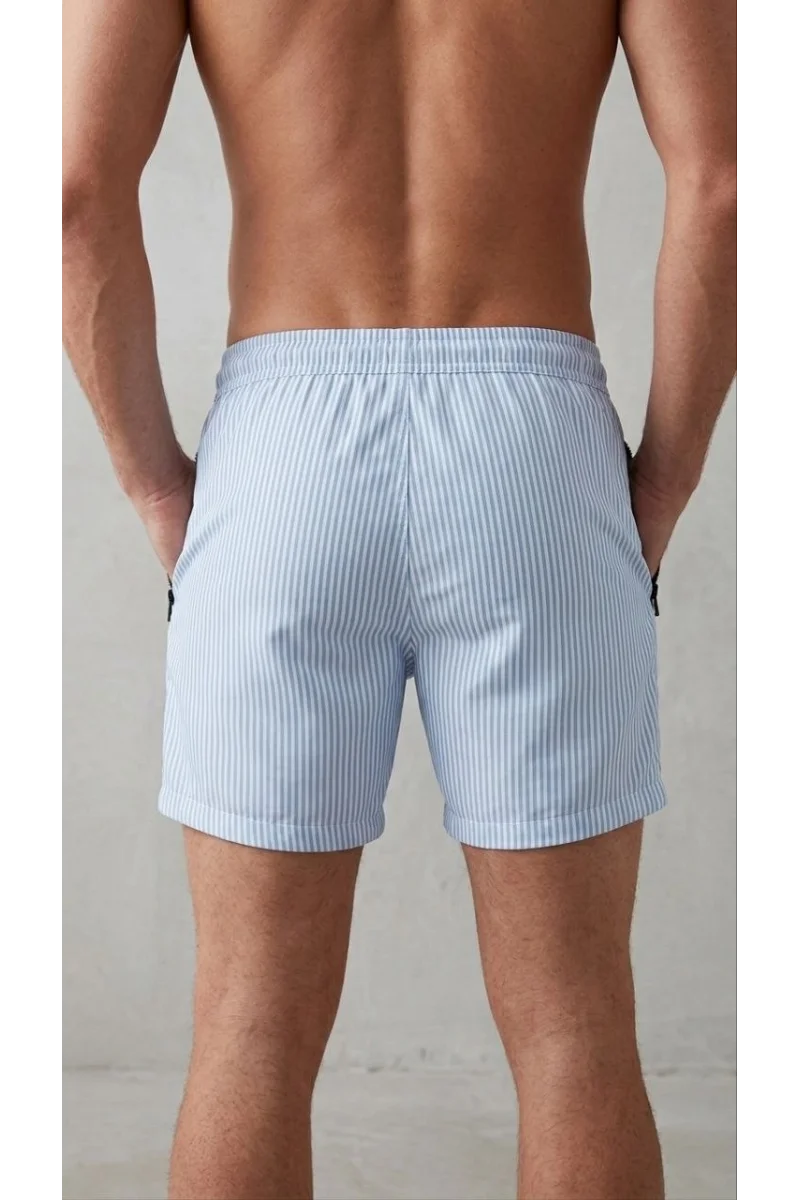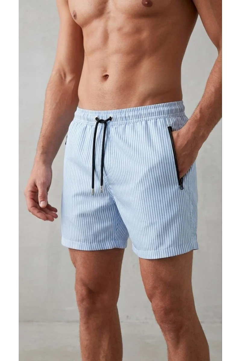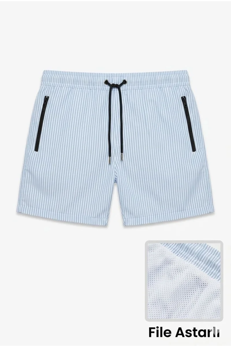 Erkek Deniz Şortu Fermuarlı Cepli File Astarlı Hızlı Kuruyan Premium - Bebek Mavisi