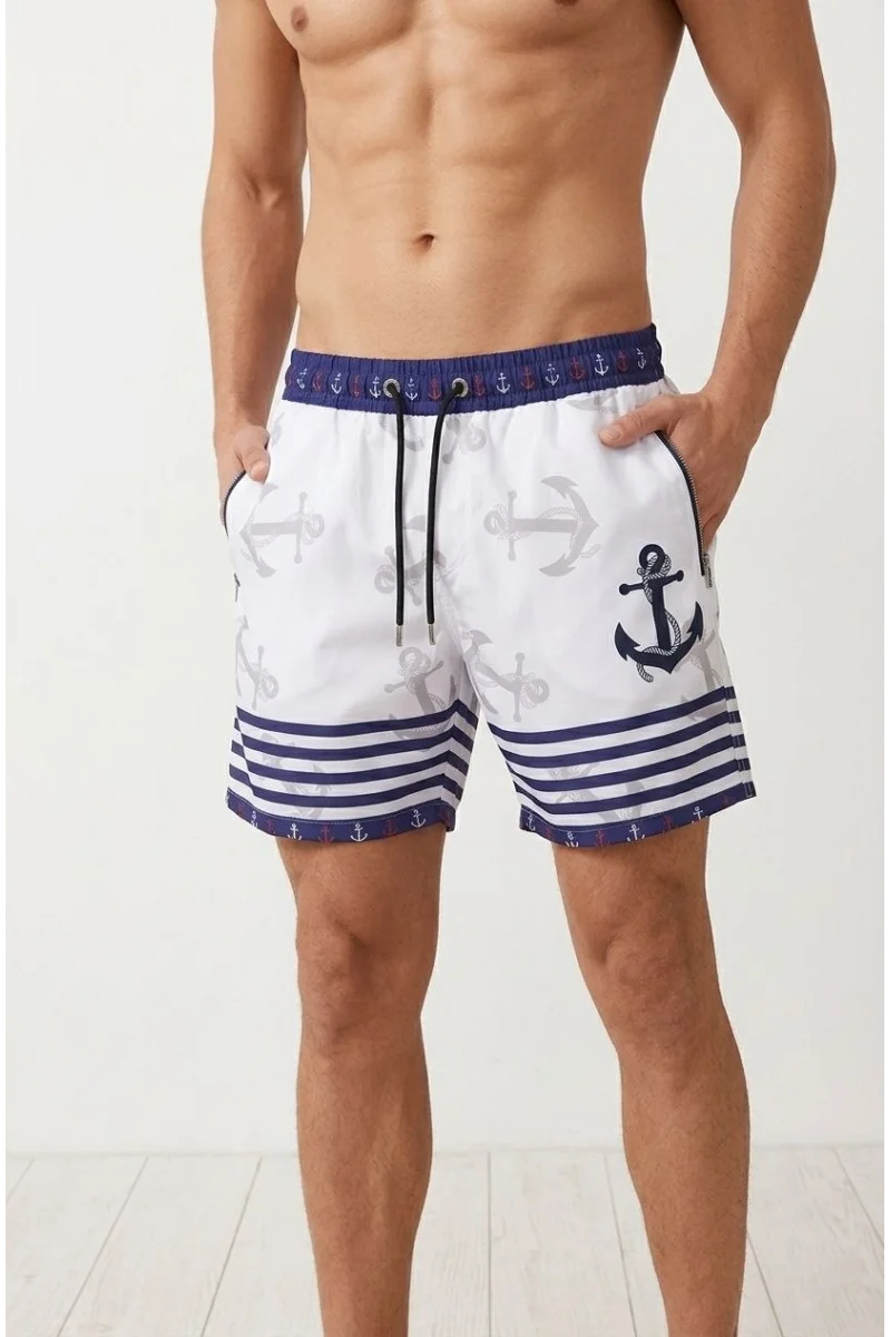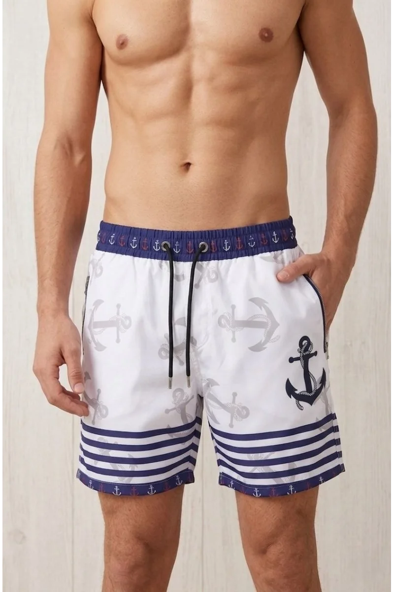 Erkek Deniz Şortu Fermuarlı Cepli File Astarlı Hızlı Kuruyan Premium - Beyaz