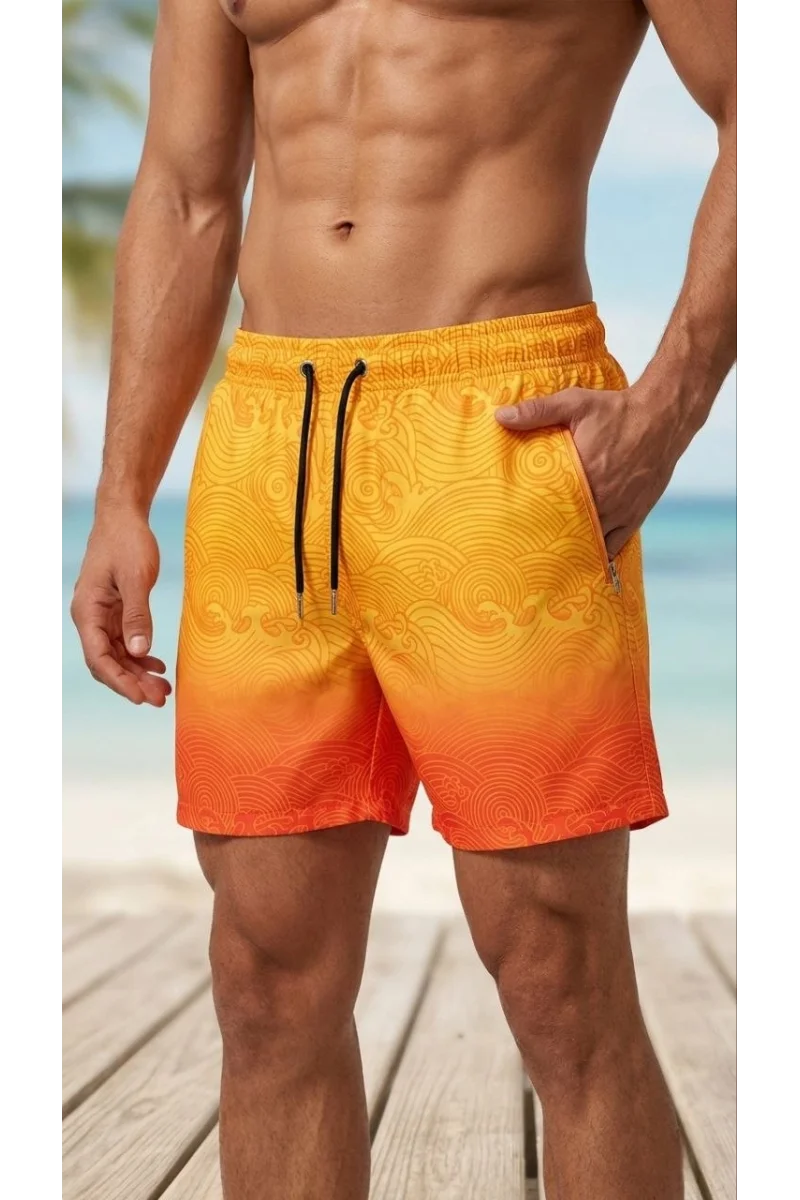 Erkek Deniz Şortu Fermuarlı Cepli File Astarlı Hızlı Kuruyan Premium - Çok Renkli