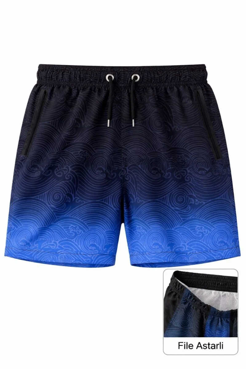 Erkek Deniz Şortu Fermuarlı Cepli File Astarlı Hızlı Kuruyan Premium - Çok Renkli