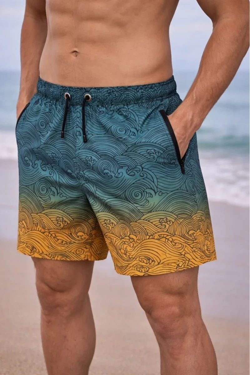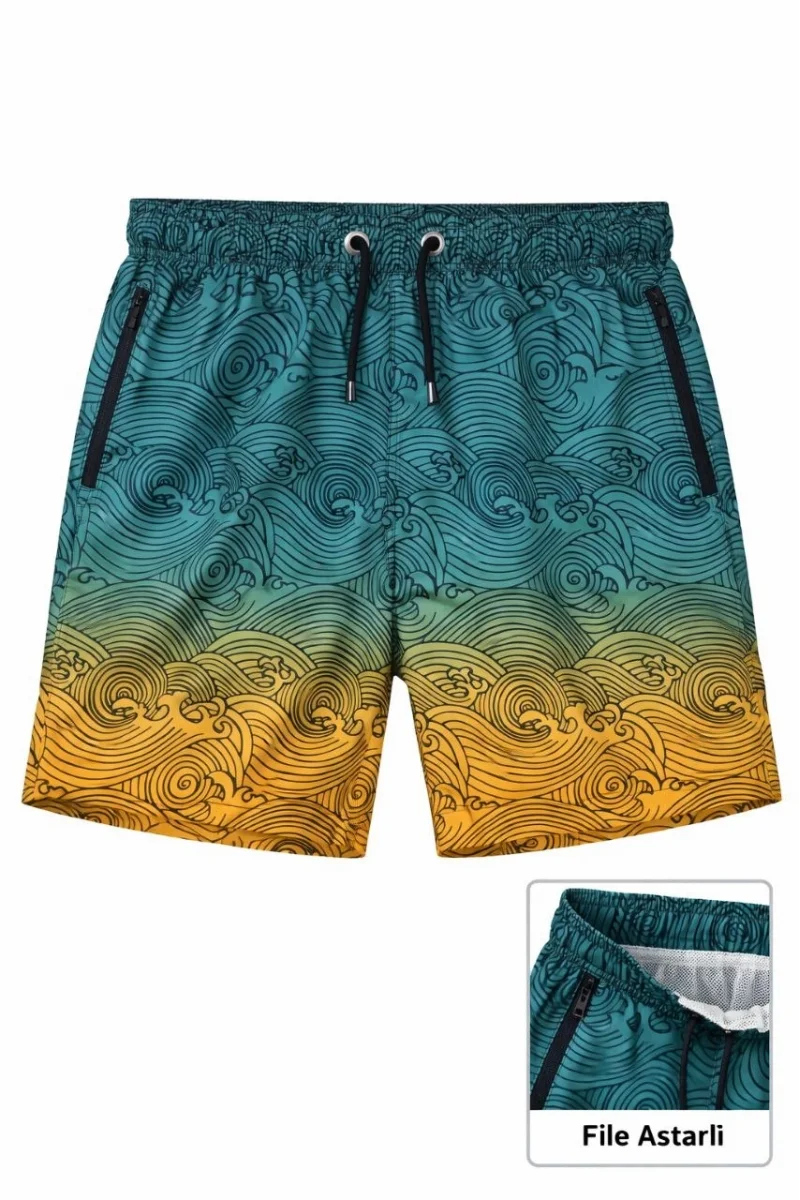 Erkek Deniz Şortu Fermuarlı Cepli File Astarlı Hızlı Kuruyan Premium - Çok Renkli