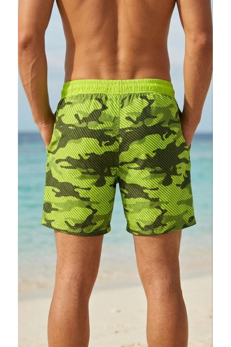Erkek Deniz Şortu Fermuarlı Cepli File Astarlı Hızlı Kuruyan Premium - Neon Yeşili