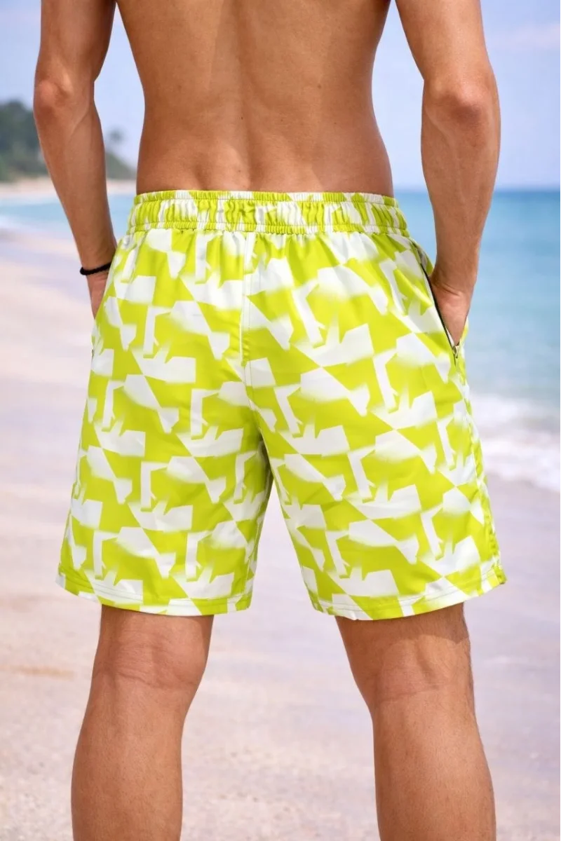 Erkek Deniz Şortu Fermuarlı Cepli File Astarlı Hızlı Kuruyan Premium - Sarı