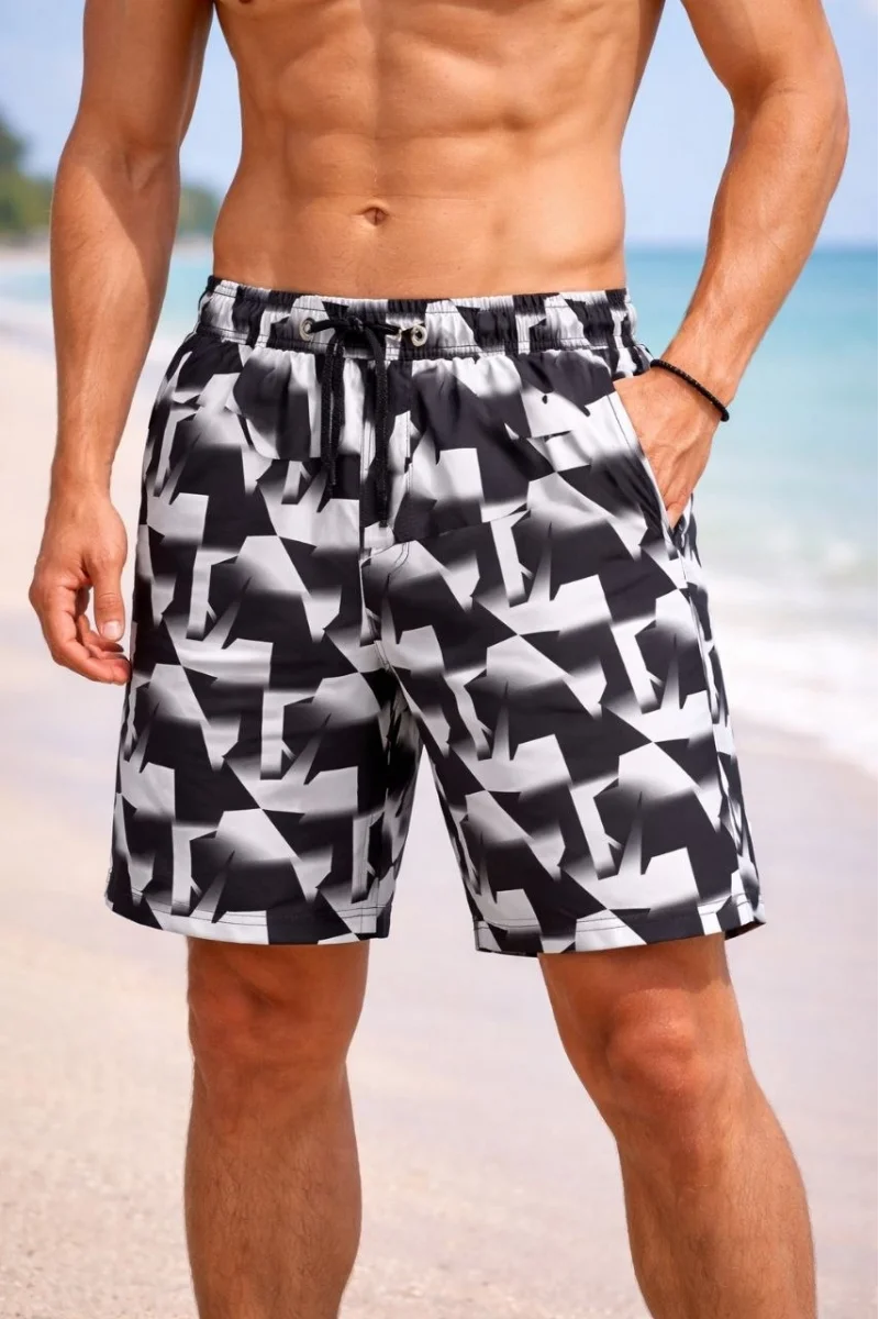 Erkek Deniz Şortu Fermuarlı Cepli File Astarlı Hızlı Kuruyan Premium - Siyah