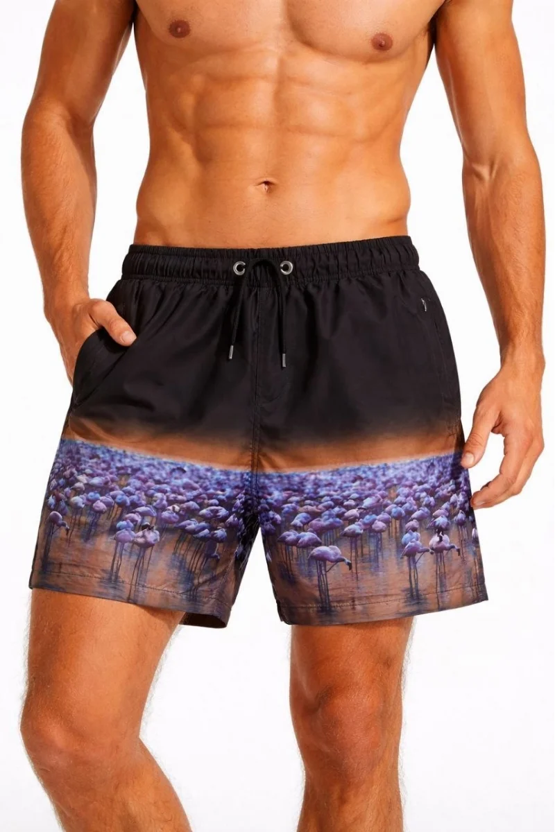 Erkek Deniz Şortu Fermuarlı Cepli File Astarlı Hızlı Kuruyan Premium - Siyah