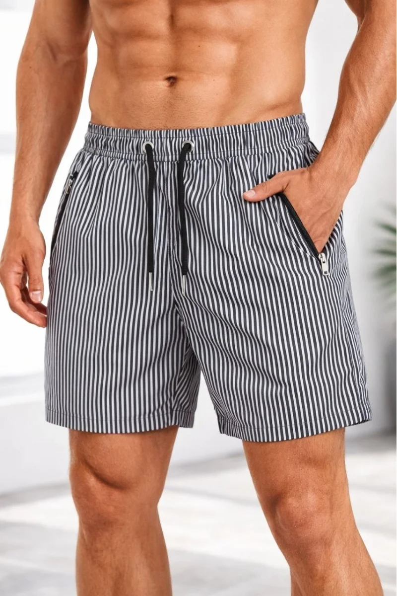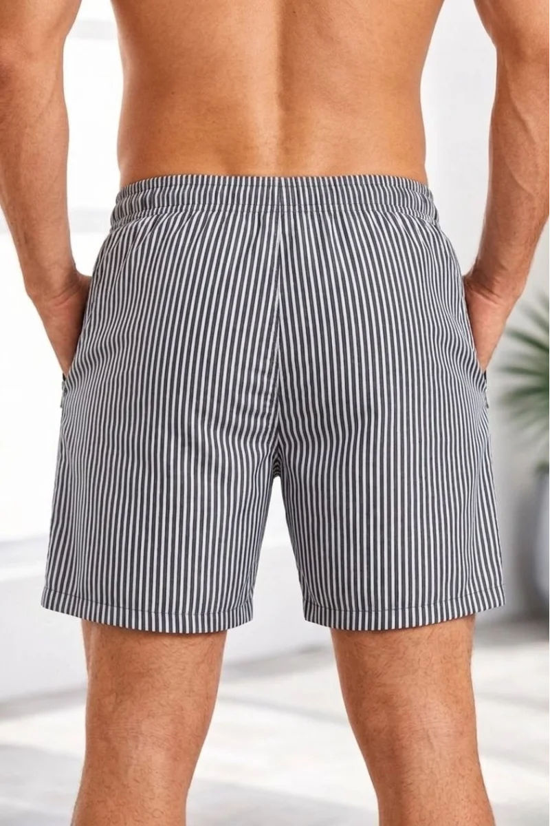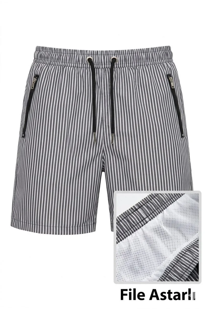 Erkek Deniz Şortu Fermuarlı Cepli File Astarlı Hızlı Kuruyan Premium - Siyah