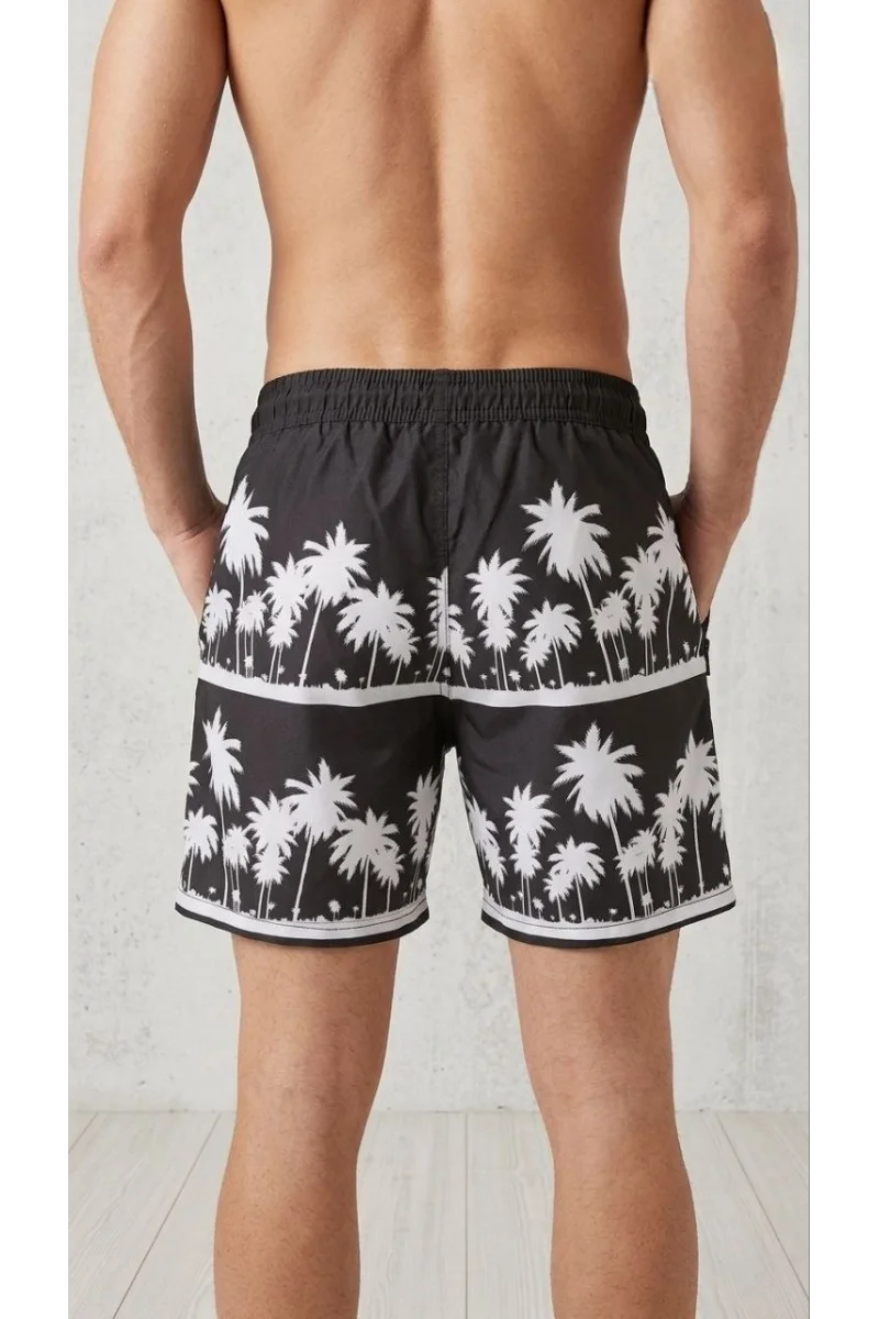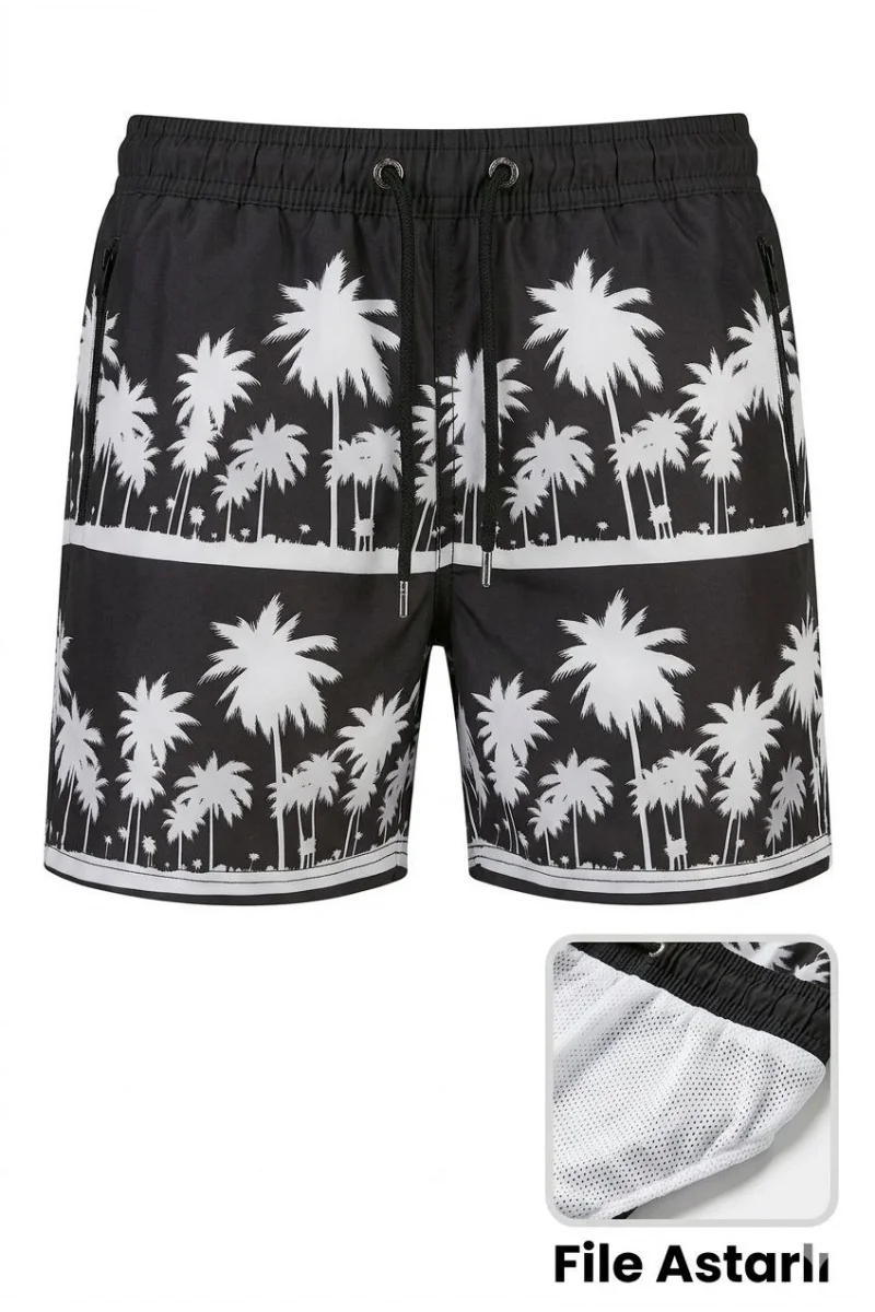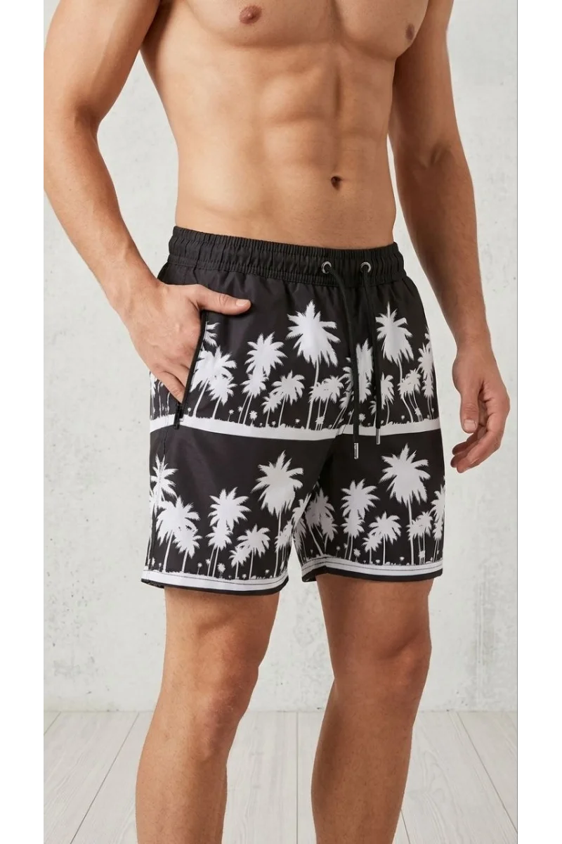 Erkek Deniz Şortu Fermuarlı Cepli File Astarlı Hızlı Kuruyan Premium - Siyah