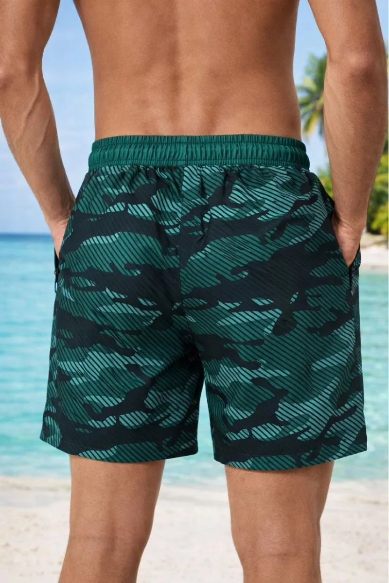 Erkek Deniz Şortu Fermuarlı Cepli File Astarlı Hızlı Kuruyan Premium - Su Yeşili