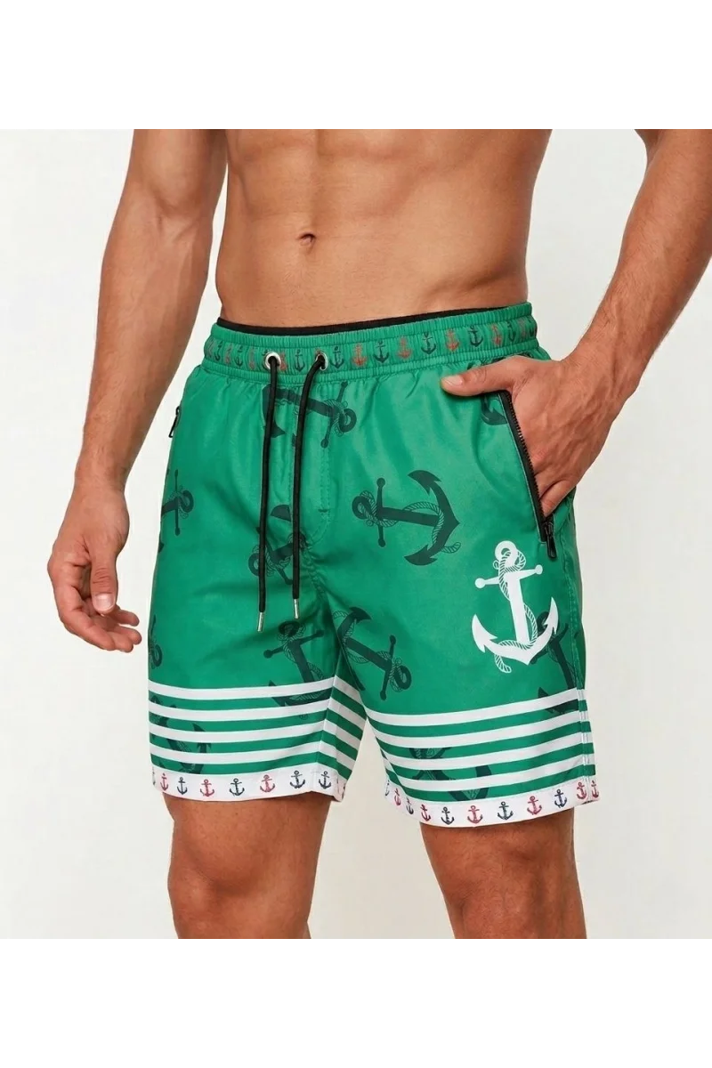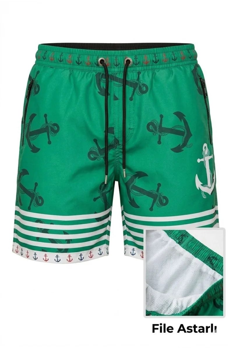 Erkek Deniz Şortu Fermuarlı Cepli File Astarlı Hızlı Kuruyan Premium - Su Yeşili