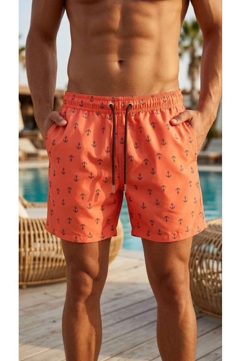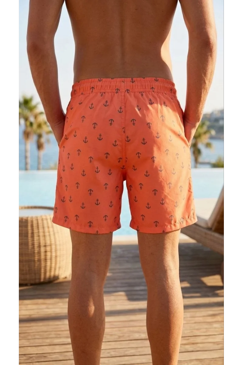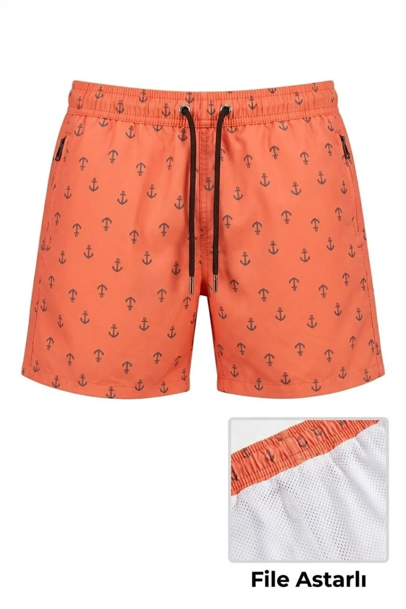 Erkek Deniz Şortu Fermuarlı Cepli File Astarlı Hızlı Kuruyan Premium - Turuncu