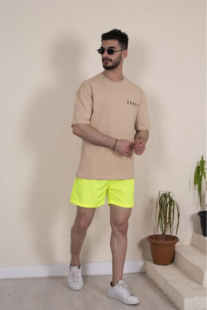 Erkek Deniz Şortu Fermuarlı Cepli File Astarlı - Neon Yeşili