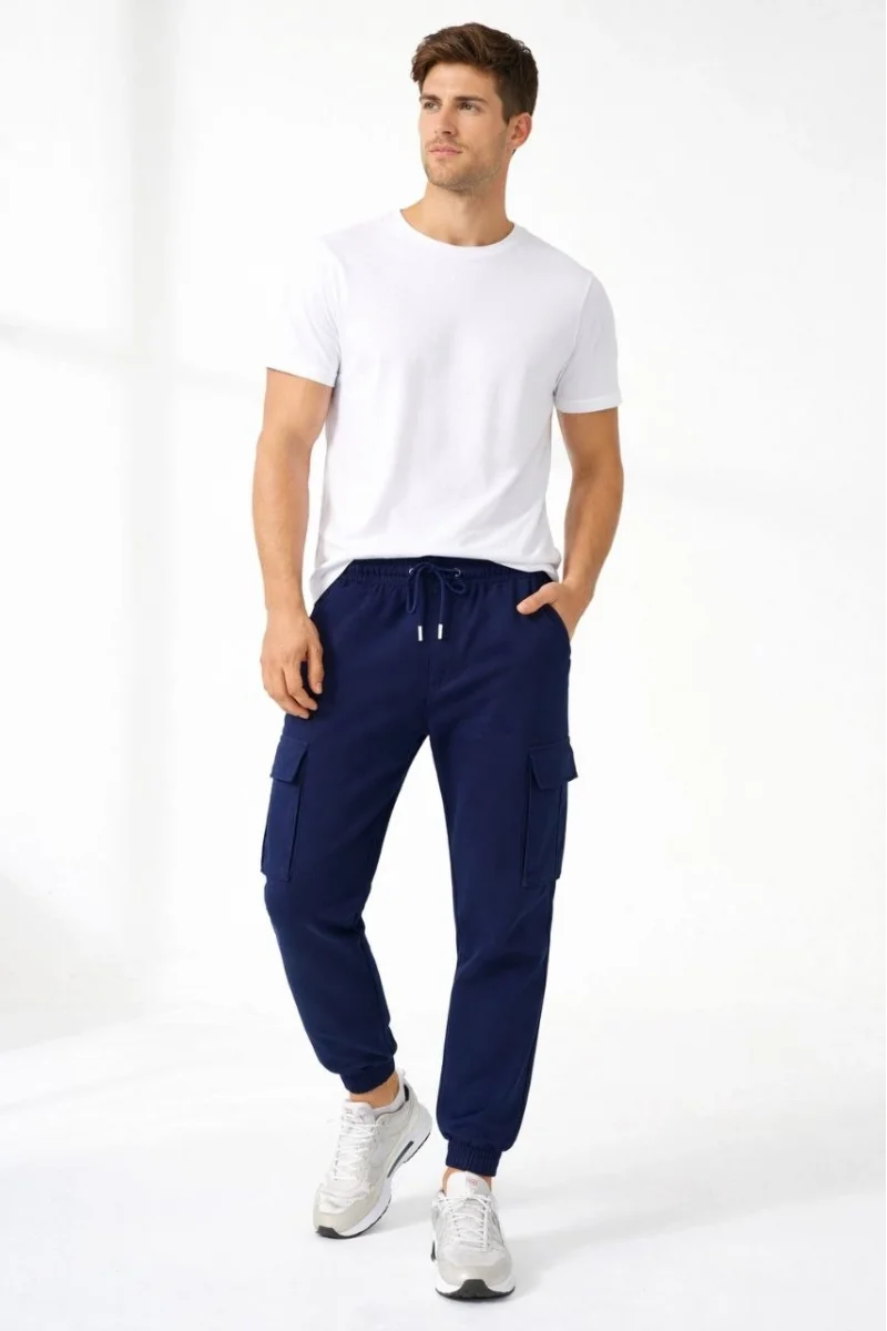 Erkek Jogger Eşofman Altı Regular Fit , Kargo Cepli, Lastikli Paça, Günlük Spor Pantolon - Lacivert