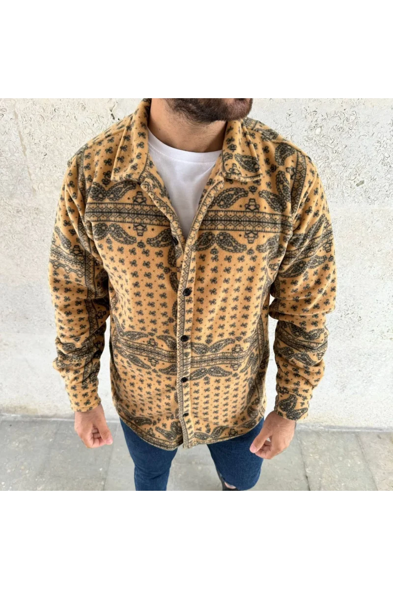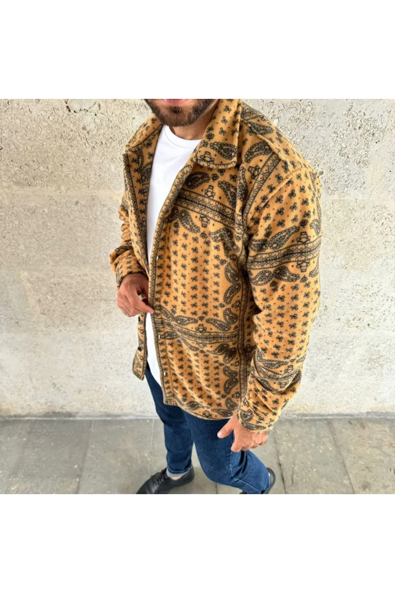 Erkek Polar Fermuarlı Sweatshirt – Kapüşonsuz, Cepli, Yumuşak Dokulu, Oversize Rahat Kalıp, Kışlık Sıcak Tutan Fermuarlı Üst - Sarı