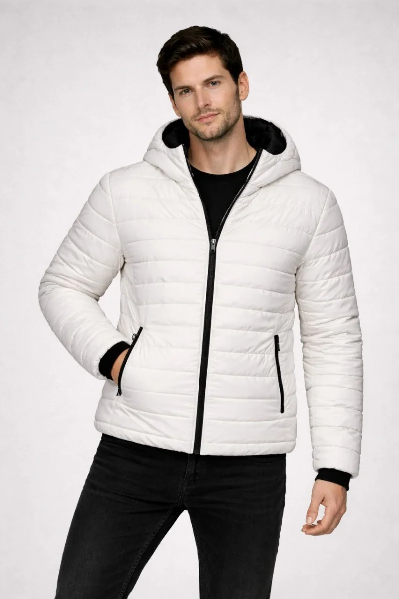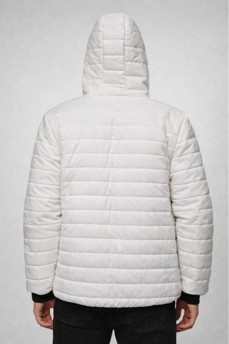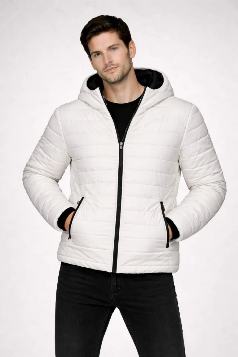 Erkek Şişme Kapüşonlu Fermuarlı Mont Su itici Kapitone Astarlı Cepli Kalıp - Krem
