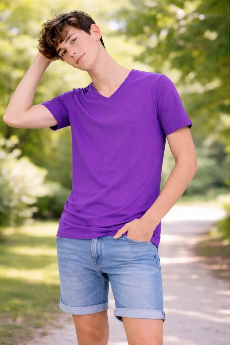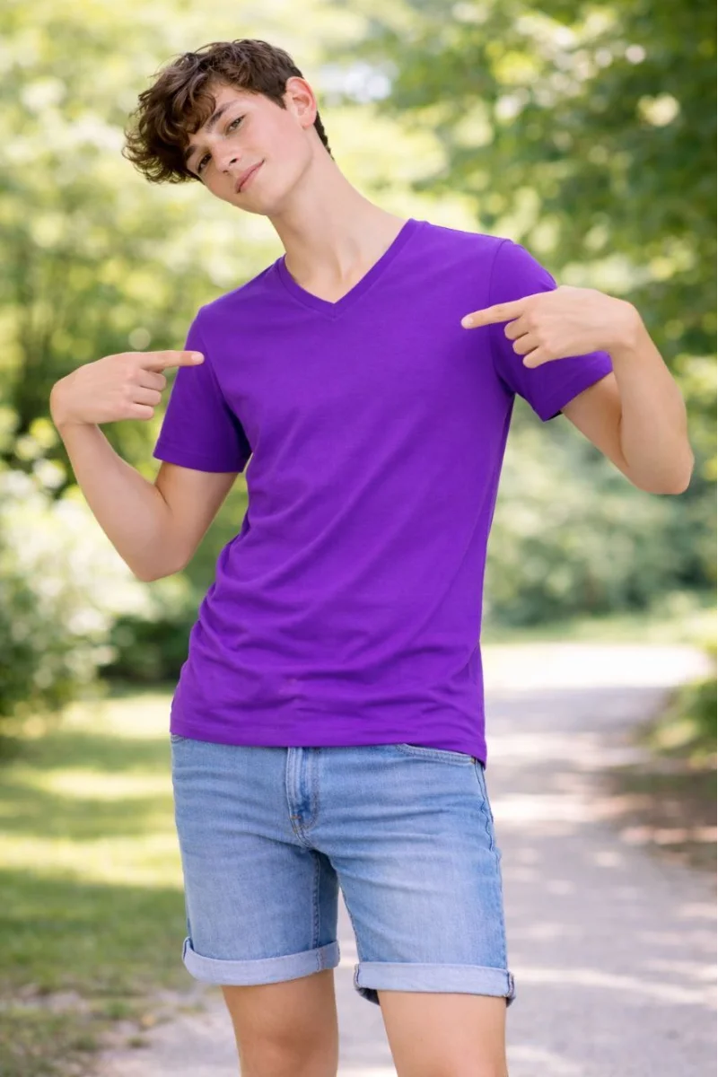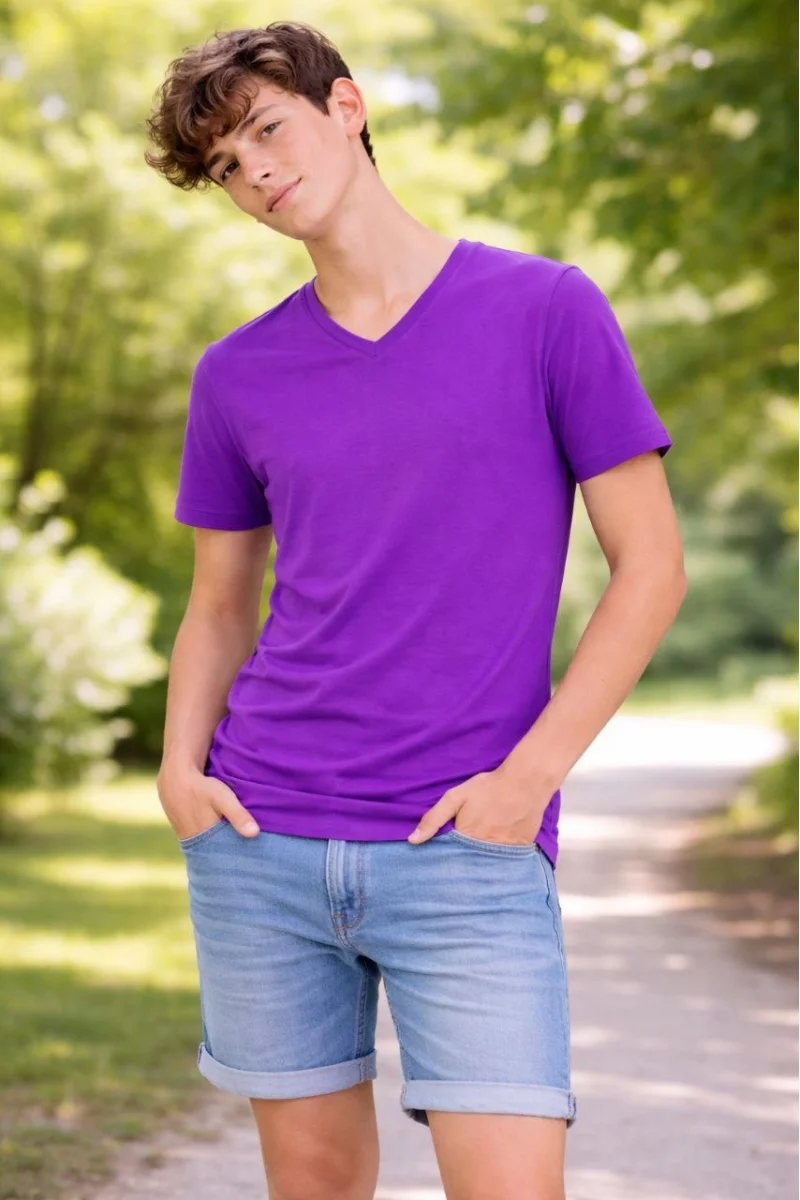 Genç Erkek Çocuk V Yaka Tişört Model - Mor