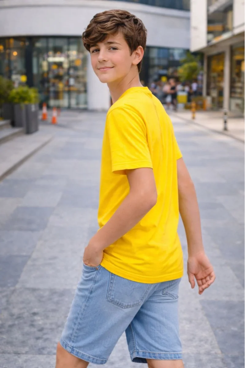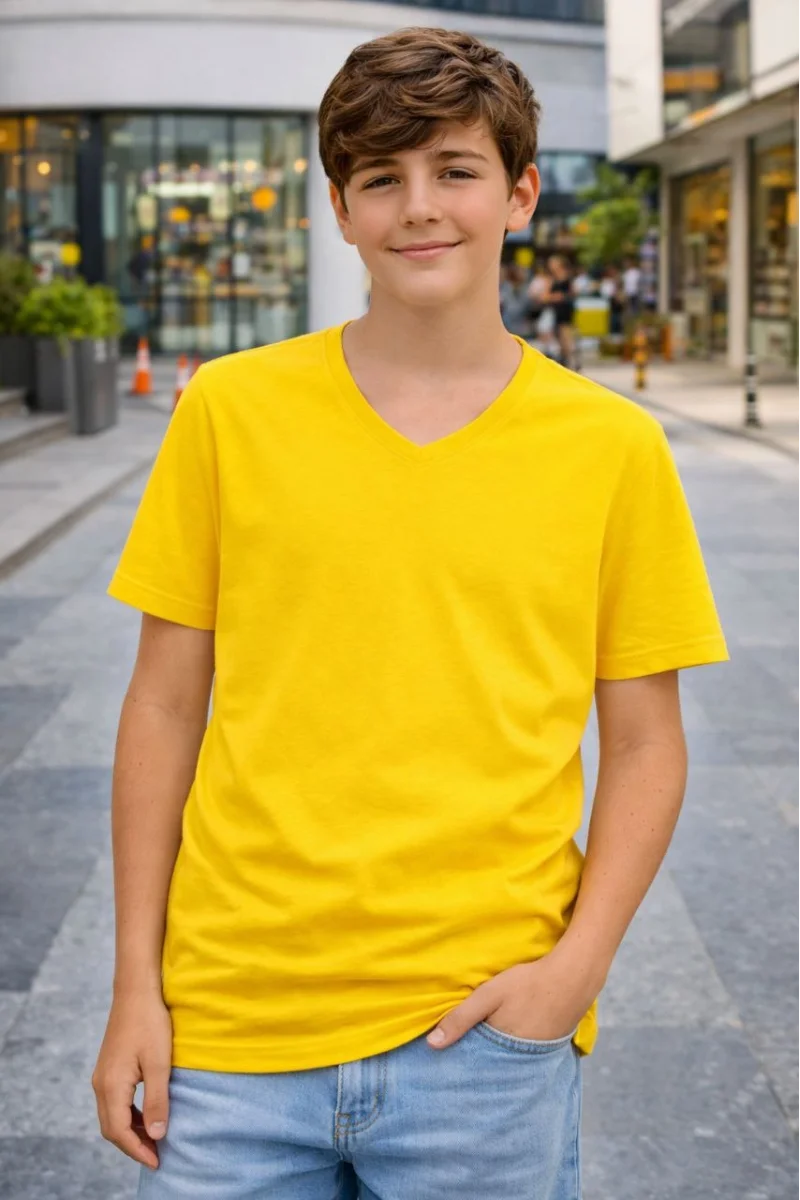 Genç Erkek Çocuk V Yaka Tişört Model - Sarı