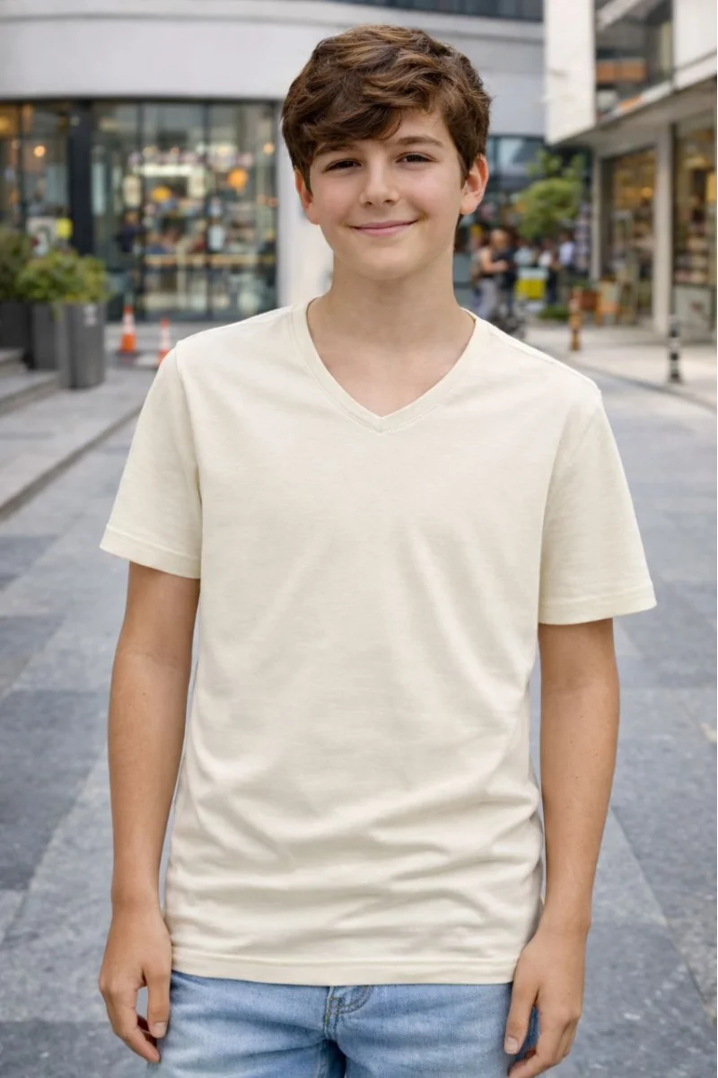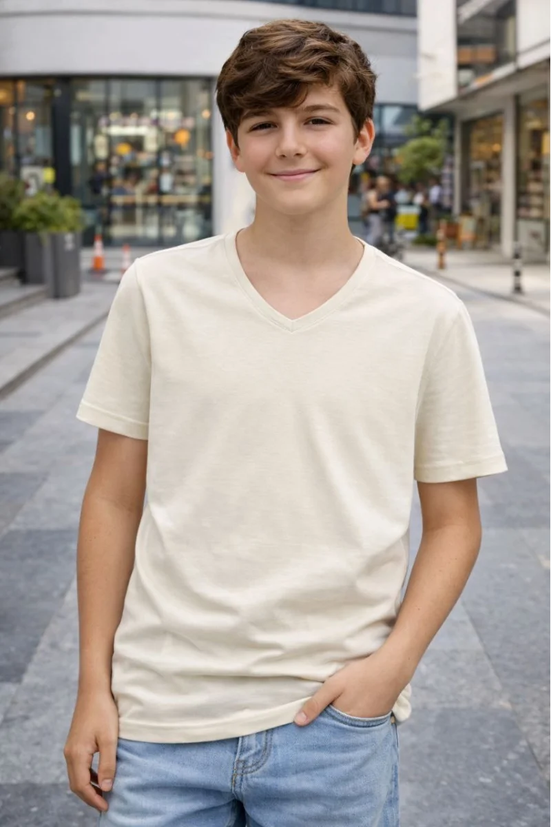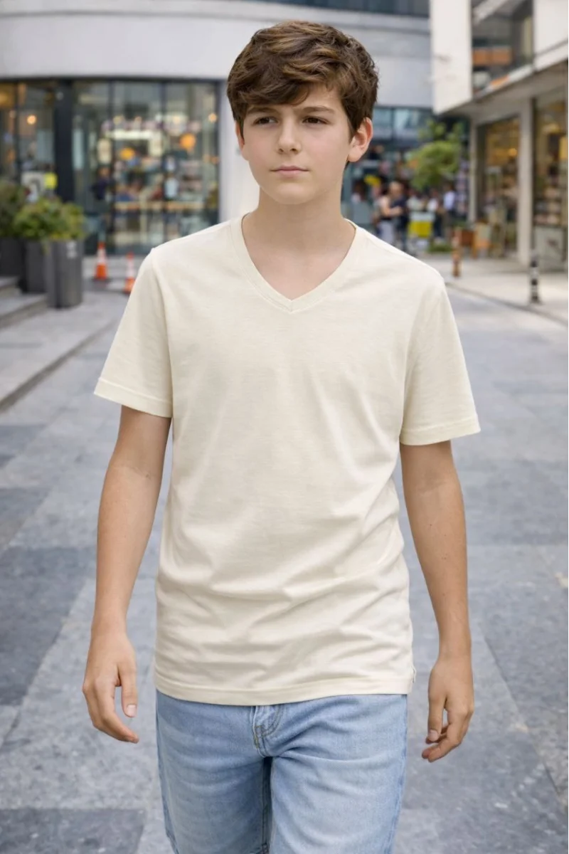 Genç Erkek Çocuk V Yaka Tişört Model - Taş