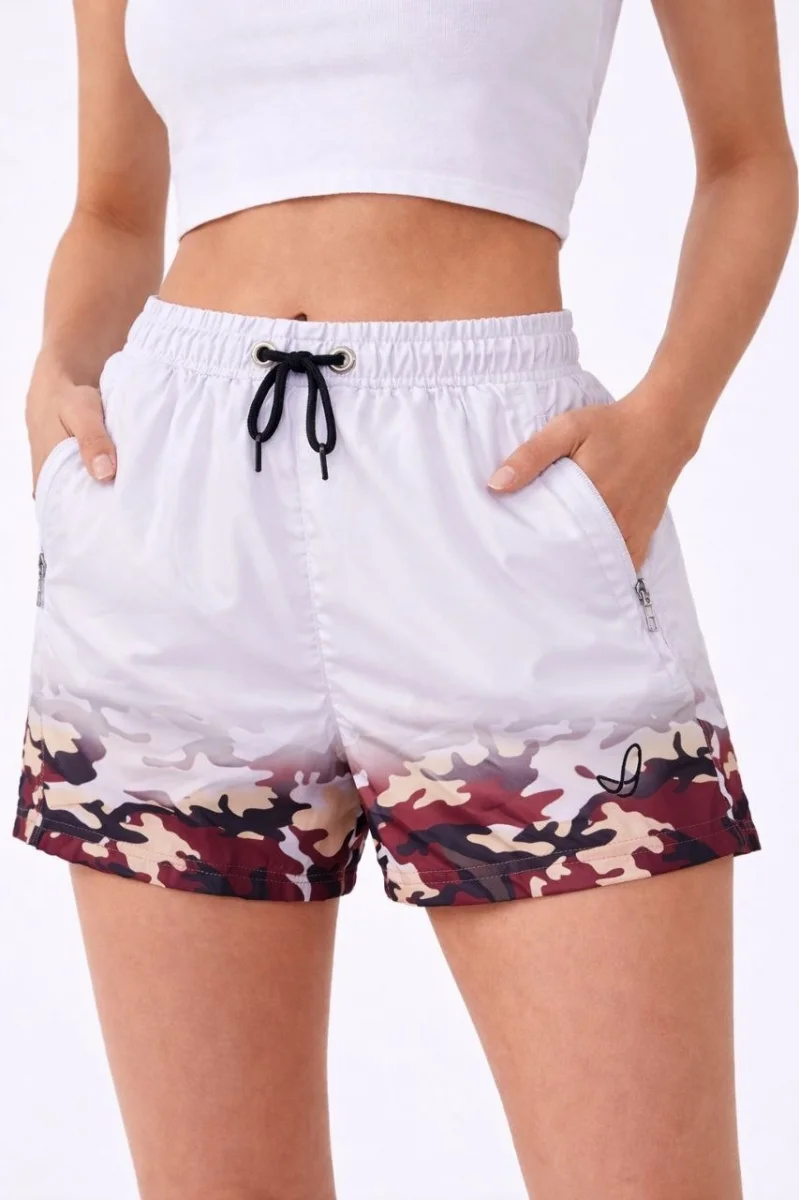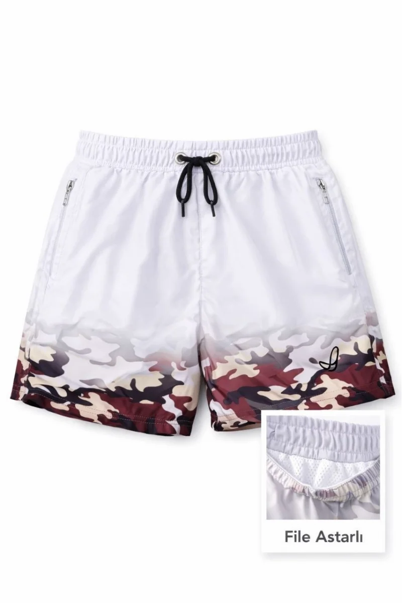 Kadın Deniz Şortu Fermuarlı Cepli File Astarlı Hızlı Kuruyan Premium - Beyaz