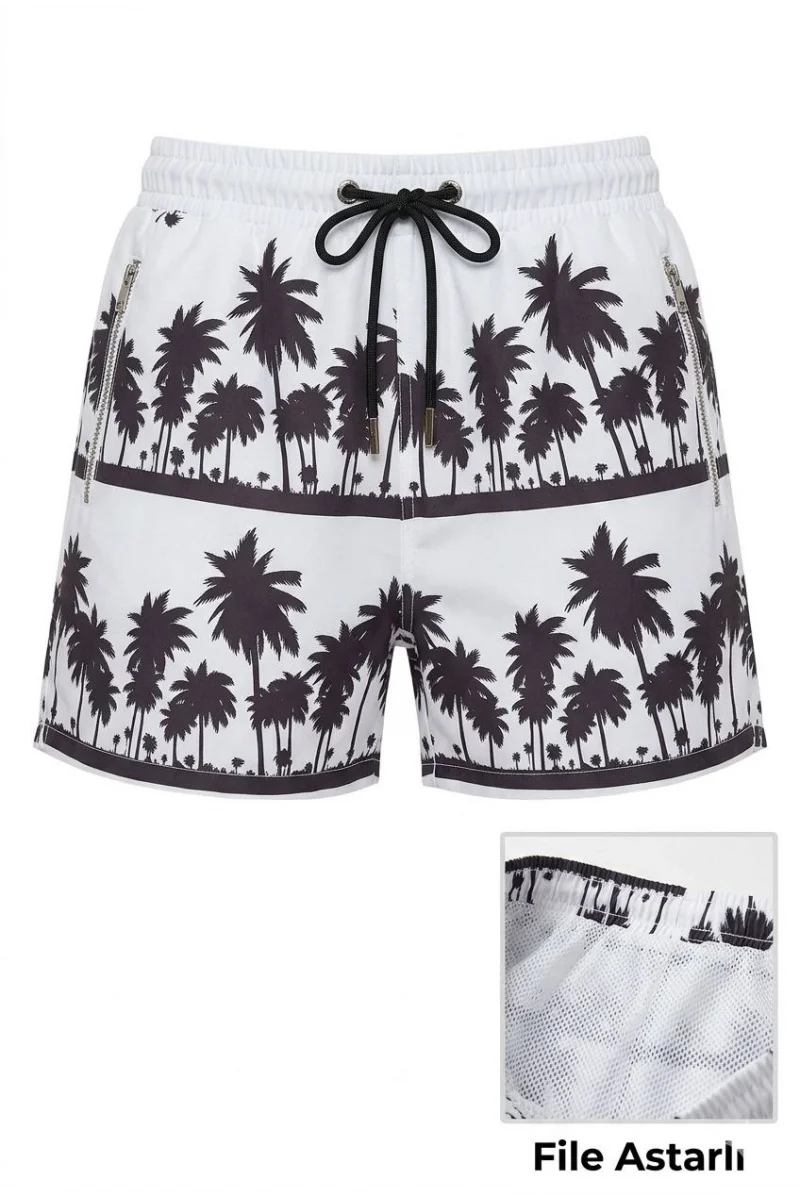 Kadın Deniz Şortu Fermuarlı Cepli File Astarlı Hızlı Kuruyan Premium - Beyaz
