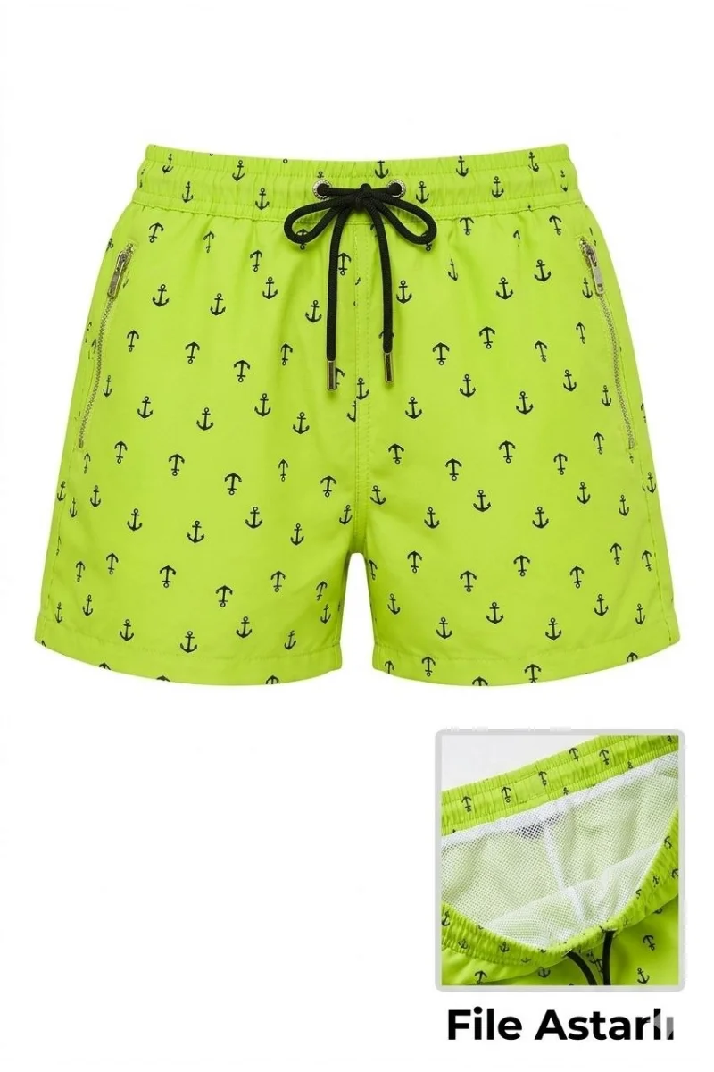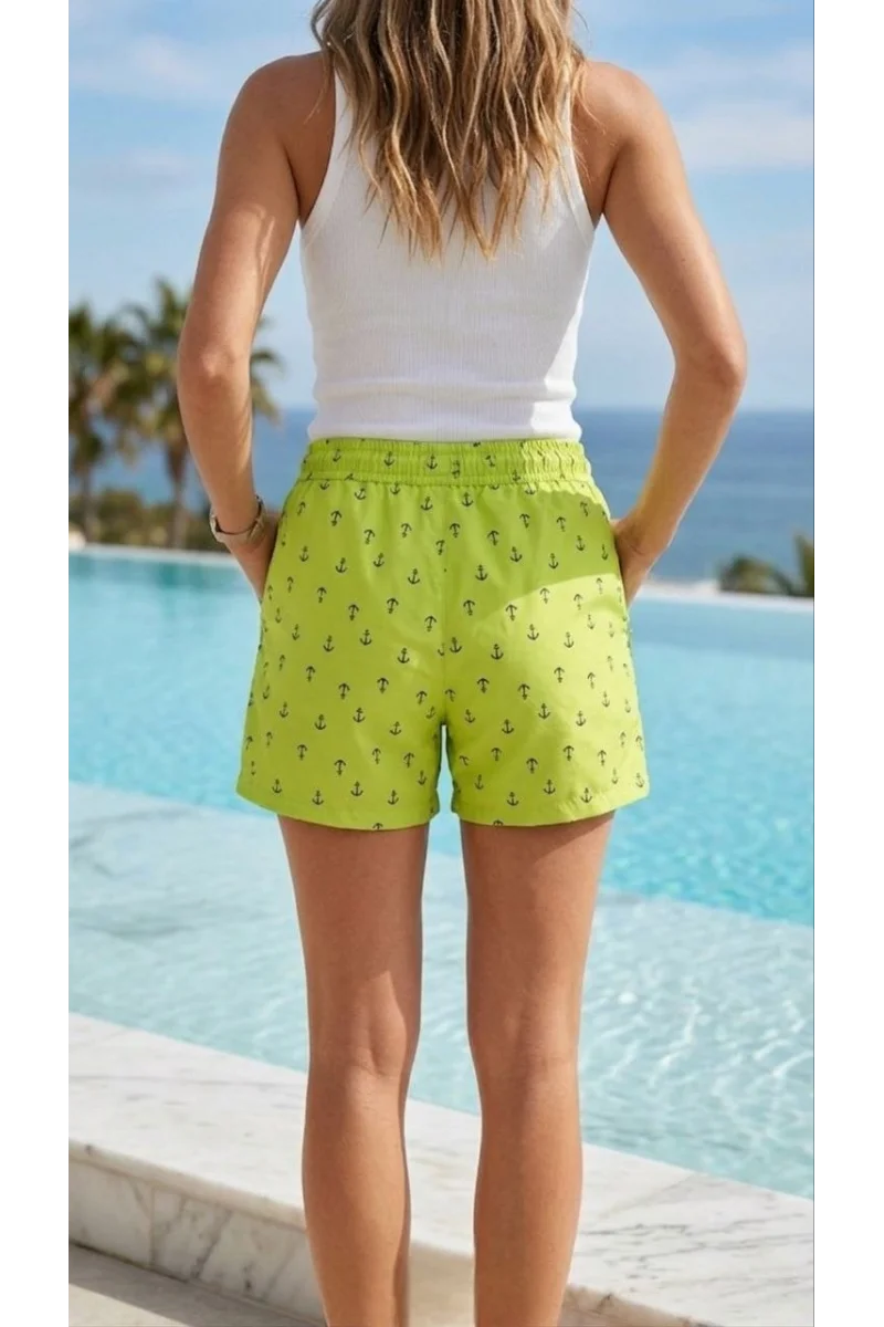 Kadın Deniz Şortu Fermuarlı Cepli File Astarlı Hızlı Kuruyan Premium - Neon Yeşili