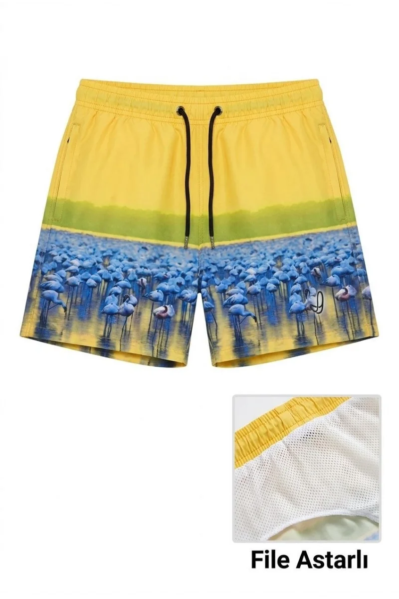 Kadın Deniz Şortu Fermuarlı Cepli File Astarlı Hızlı Kuruyan Premium - Sarı