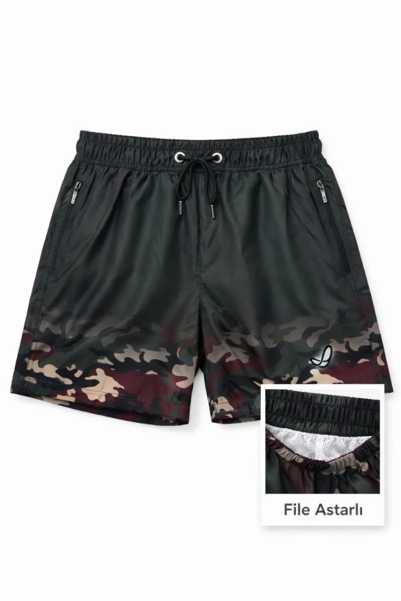 Kadın Deniz Şortu Fermuarlı Cepli File Astarlı Hızlı Kuruyan Premium - Siyah