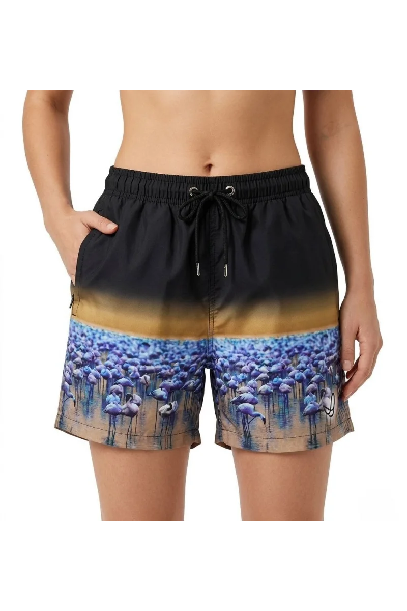 Kadın Deniz Şortu Fermuarlı Cepli File Astarlı Hızlı Kuruyan Premium - Siyah